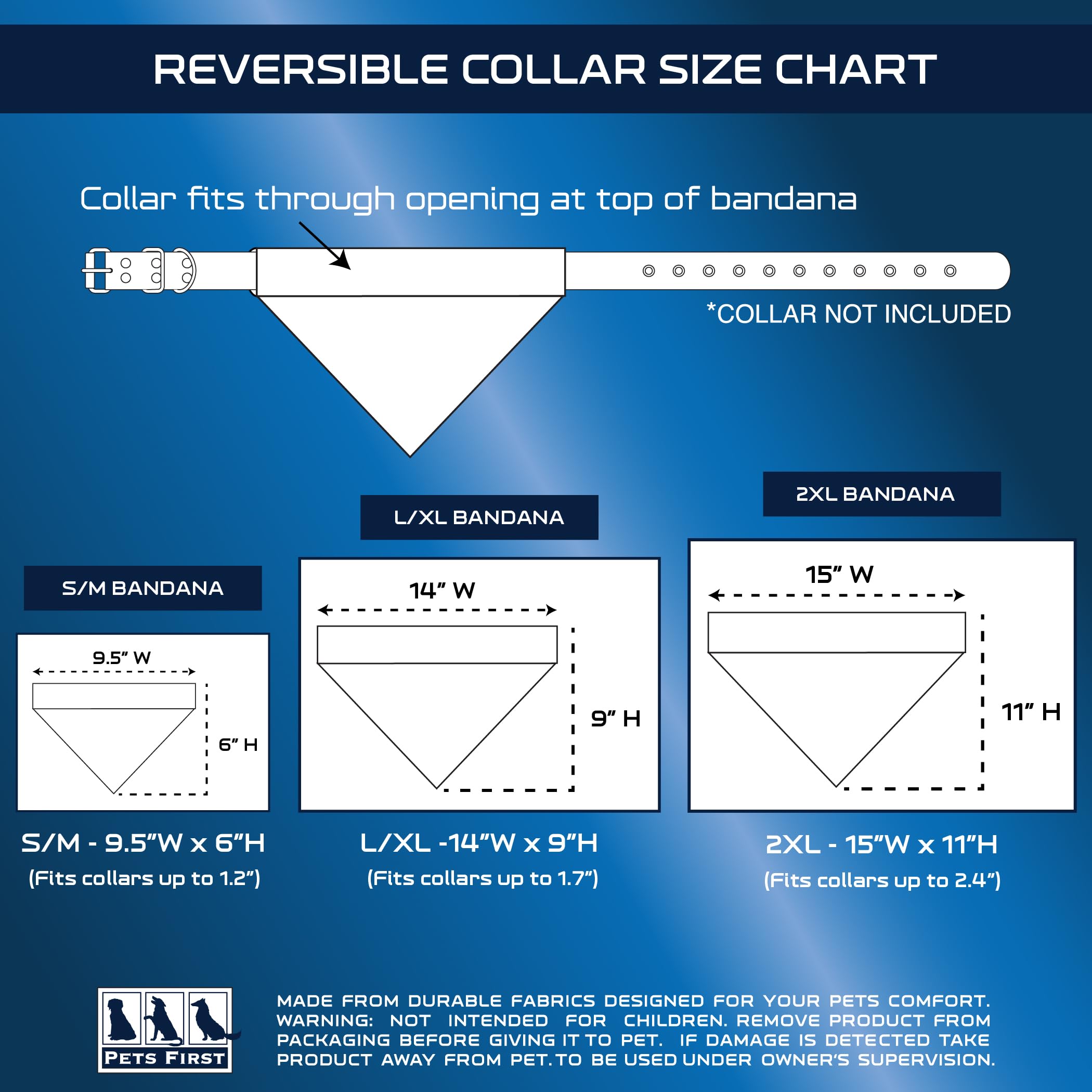 >Your pet will surely be able to show off his/her team spirit with this unique dual sided COLLEGE DOG BANDANA! >Looking for a STRONG and DURABLE DOG COLLAR?? Oh, you also want it to be COOL and Fashionable? Right? >You can now buy your sporty pup the collar of your favorite COLLEGIATE team!!! >This NCAA DOG& CAT BANDANA features a screen printed team logo and name on 1 side & an embroidered team logo on the other side! It will bring fun and excitement to you as well as to your four legged sports fan!!! >Get ready for some SPORTS with a COOL PET BANDANA that includes your favorite TEAM NAME and LOGO so that you can stand out in the crowd! Officially licensed and ready for game day! >This NCAA BANDANA for Pets is made with DURABLE & Comfortable 100% poly-cotton materials that keeps it wrinkle free and easy to clean. It features your favorite Football/Basketball Team NAME and LOGO in vibrant team color! It has a slide-through opening for your Pet Collar! >Great for parties, BBQs, tailgating and even Halloween as a pet costume. Looks even greater with our matching NCAA Pet Collar, NCAA Jersey, NCAA Toys and the rest of our NCAA Pet Collection! >Score a touchdown with this authentic PET COLLAR so your entire family is ready for game day! >SIZING & USE: This COLLEGE BANDANA for DOGS & CATS is available in two sizes, it will fit most dogs, including small dogs, medium dogs and large dogs. Choose from: Small/Medium Pet Bandana and Large/X-Large Pet Bandana. >> Please follow the illustrated Size Chart located in image #2 and match your pet's neck to the correct size! >Our LICENSED PET BANDANA comes in 50+ COLLEGIATE TEAMS: Cincinnati Bearcats, Connecticut Huskies, East Carolina Pirates, Houston Cougars, Memphis Tigers, Navy Midshipmen, Smu Mustangs, South Florida Bulls, Temple Owls, Tulane Green Wave, Tulsa Golden Hurricane, Boston College Eagles, Clemson Tigers, Duke Blue Devils, Florida State Seminoles, Georgia Tech Yellow Jackets, Louisville Cardinals, Miami (Fl) Hurricanes, North Carolina Tar Heels, North Carolina State Wolfpack, Pittsburgh Panthers, Syracuse Orange, Virginia Cavaliers, Virginia Tech Hokies, Wake Forest Demon Deacons, Baylor Bears, Iowa State Cyclones, Kansas Jayhawks, Kansas State Wildcats, Oklahoma Sooners, Oklahoma State Cowboys, Tcu Horned Frogs, Texas Longhorns, Texas Tech Red Raiders, West Virginia Mountaineers, Illinois Fighting Illini, Indiana Hoosiers, Iowa Hawkeyes, Maryland Terrapins, Michigan Wolverines, Michigan State Spartans, Minnesota Golden Gophers, Nebraska Cornhuskers, Northwestern Wildcats, Ohio State Buckeyes, Penn State Nittany Lions, Purdue Boilermakers, Rutgers Scarlet Knights, Wisconsin Badgers, Charlotte 49ers, Fiu Golden Panthers, Florida Atlantic Owls, Louisiana Tech Bulldogs, Marshall Thundering Herd, Middle Tennessee Blue Raiders, North Texas Mean Green, Old Dominion Monarchs, Rice Owls, Southern Miss Golden Eagles, Uab Blazers, Utep Miners, Utsa Roadrunners, Western Kentucky Hilltoppers, Army West Point Black Knights, Byu Cougars, Liberty Flames, Massachusetts Minutemen, New Mexico State Aggies, Notre Dame Fighting Irish, Akron Zips, Ball State Cardinals, Bowling Green Falcons, Buffalo Bulls, Central Michigan Chippewas, Eastern Michigan Eagles, Kent State Golden Flashes, Miami (Oh) Redhawks, Northern Illinois Huskies, Ohio Bobcats, Toledo Rockets, Western Michigan Broncos, Air Force Falcons, Boise State Broncos, Colorado State Rams, Fresno State Bulldogs, Hawaii Rainbow Warriors, Nevada Wolf Pack, New Mexico Lobos, San Diego State Aztecs, San Jose States Partans, Unlv Rebels, Utah State Aggies, Wyoming Cowboys, Arizona Wildcats, Arizona State Sun Devils, California Golden Bears, Colorado Buffaloes, Oregon Ducks, Oregon State Beavers, Stanford Cardinal, Ucla Bruins, Usc Trojans, Utah Utes, Washington Huskies, Washington State Cougars, Alabama Crimson Tide, Arkansas Razorbacks, Auburn Tigers, Florida Gators, Georgia Bulldogs, Kentucky Wildcats, Lsu Tigers, Mississippi State Bulldogs, Missouri Tigers, Ole Miss Rebels, South Carolina Gamecocks, Tennessee Volunteers, Texas A&m Aggies, Vanderbilt Commodores, Appalachian State Mountaineers, Arkansas State Red Wolves, Coastal Carolina Chanticleers, Georgia Southern Eagles, Georgia State Panthers, Louisiana Ragin' Cajuns, Louisiana-monroe Warhawks, South Alabama Jaguars, Texas State Bobcats, Troy Trojans, Ucf Knights, Wichita State Shockers, Albany Great Danes, Binghamton Bearcats, Hartford Hawks, Maine Black Bears, Massachusetts-lowell River Hawks, New Hampshire Wildcats, Stony Brook Seawolves, Umbc Retrievers, Vermont Catamounts, Davidson Wildcats, Dayton Flyers, Duquesne Dukes, Ford Hamrams, George Mason Patriots, George Washington Colonials, La Salle Explorers, Rhode Island Rams, Richmond Spiders, Saint Joseph's (Pa) Hawks, Saint Louis Billikens, St. Bonaventure Bonnies, Virginia Commonwealth Rams, Florida Gulf Coast Eagles, Jacksonville Dolphins, Kennesaw State Owls, Lipscomb Bisons, N. j. i. t. Highlanders, North Alab
