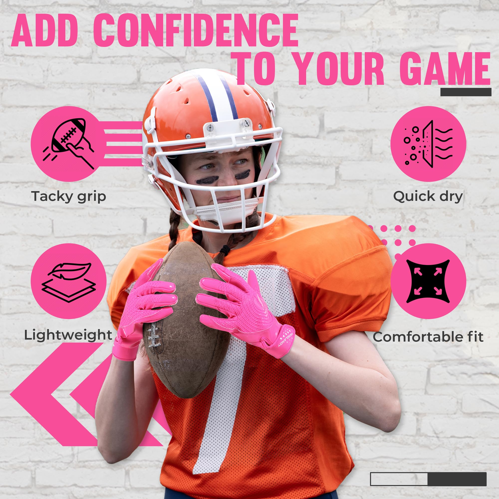 Engineered for Your Young Champions: Our youth football gloves feature a sticky silicone palm that locks onto the ball. This game-ready grip ensure every critical catch stays secured - because no clutch moment should slip through their fingers.【IMPORTANT NOTE: These are adult-sized gloves. Please carefully check our size chart before purchasing to ensure a perfect fit and avoid any inconvenience.】