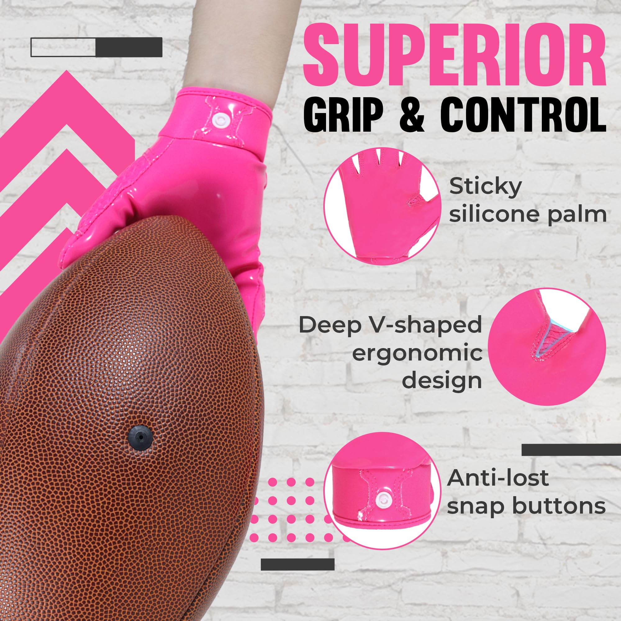 Football Gloves for Family Touchdowns: Available in sizes for kids and adults with a vibrant range of colors, our football gloves are designed to unite the whole family. These football gloves are more than just gear; they're a tool for family bonding. Whether it's weekend games or daily practice, these gloves create unforgettable moments and lasting memories for you and your loved ones.