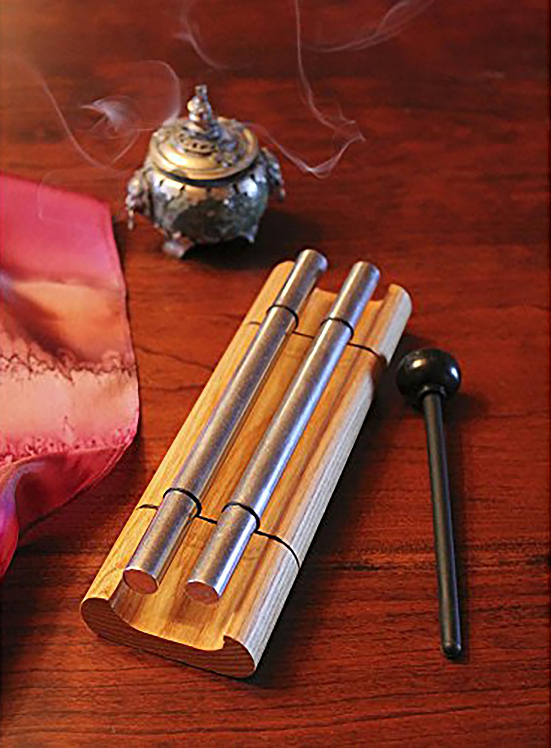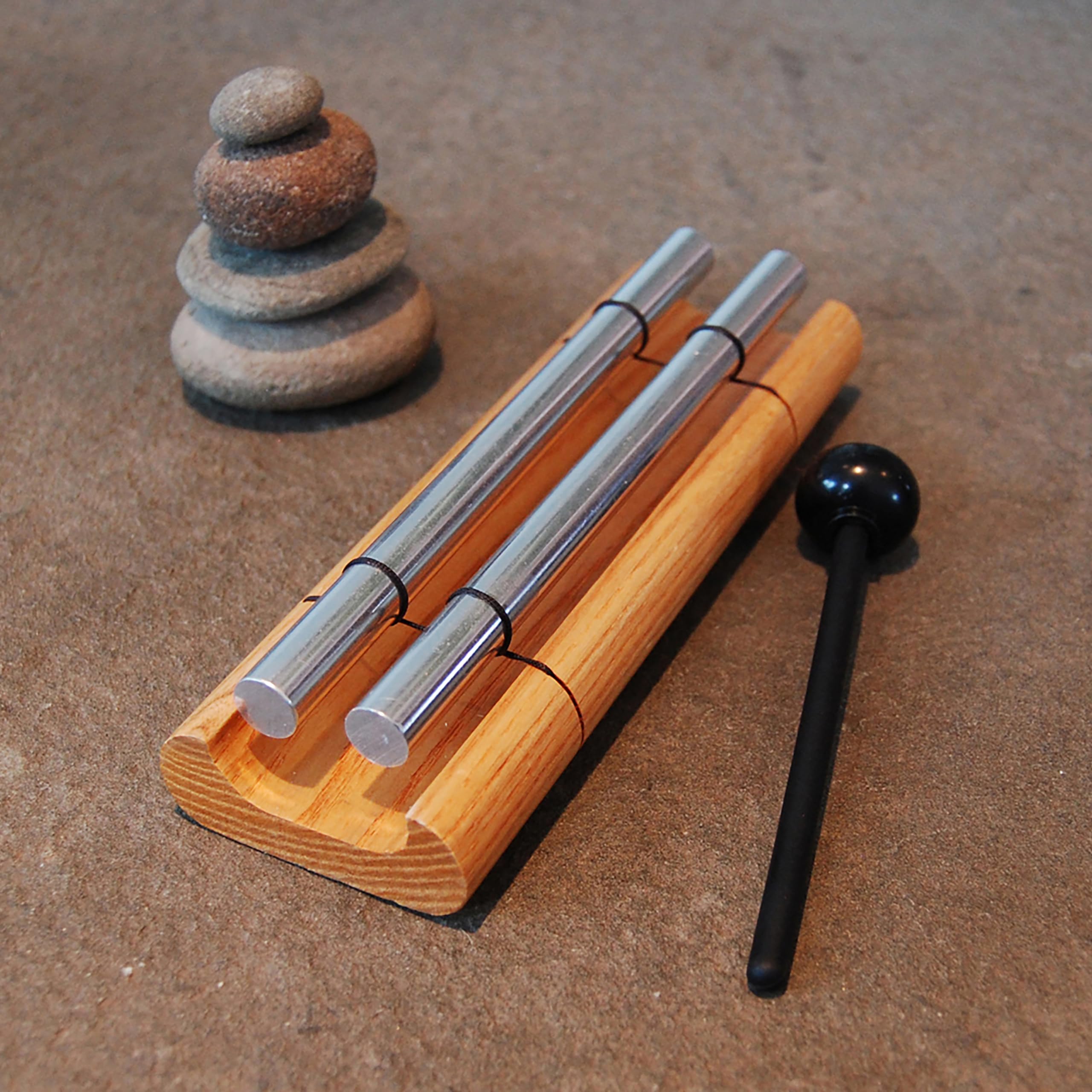 ZENERGY MEDITATION: Hand-held chime with two rods purposely tuned to nearly but not quite the same pitch; when both are struck at the same time, an acoustical phenomenon known as "beating" is produced; lifetime tuning guarantee