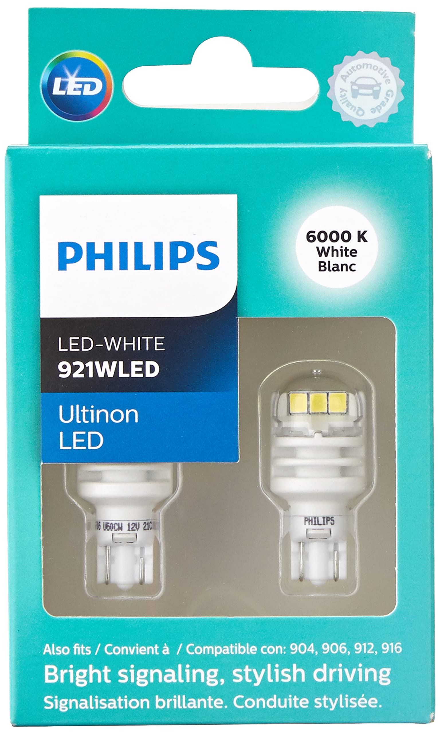 Philips Automotive Lighting 921WLED Ultinon LED Bulb (White), 2 Pack