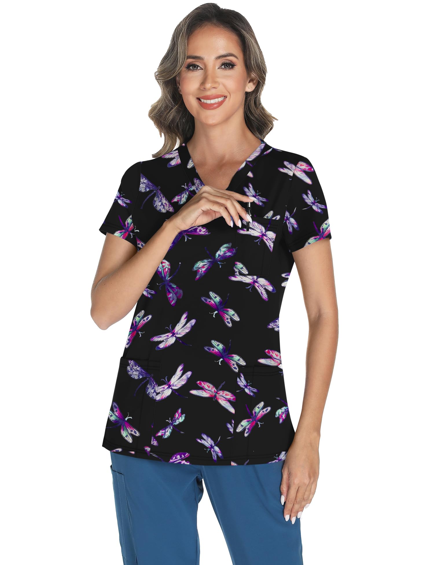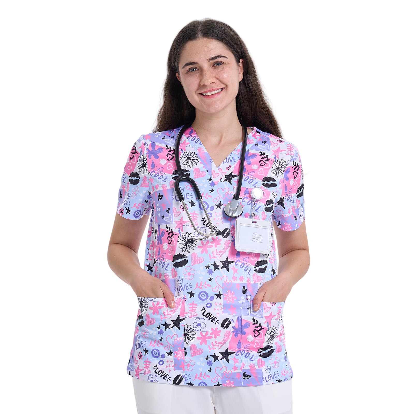 Design: Scrub shirts for women short sleeve nurse uniforms features print color, classic v neck, simple short sleeve, side slits and 3 functional pockets. Printed scrub tops are simple and lovely, including casual, cartoon, holiday, colorful prints, suitable for professional environments as well as daily casual.