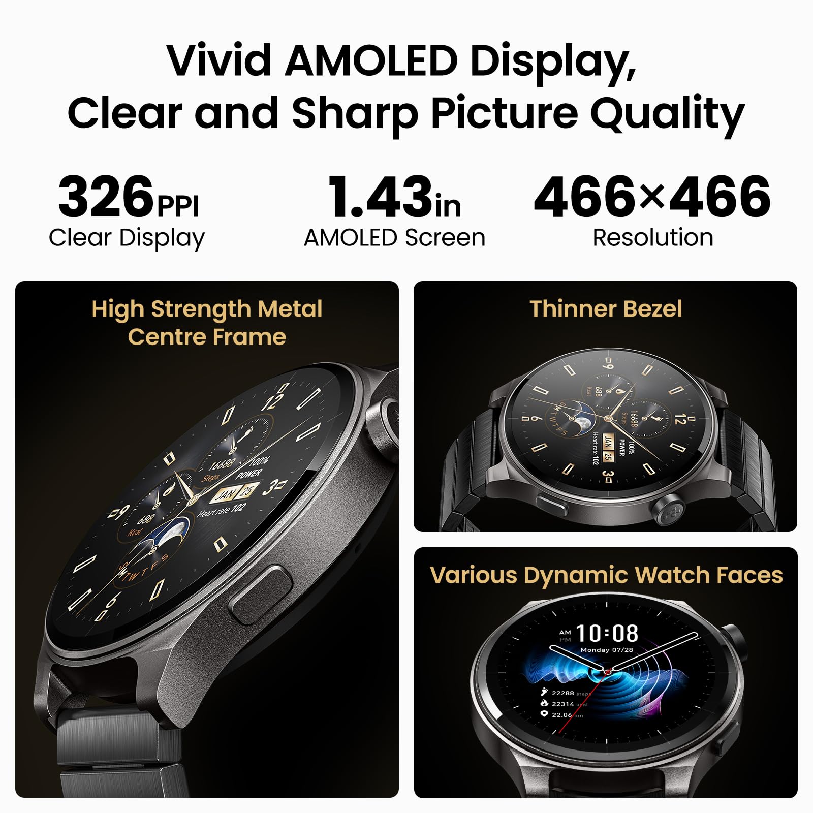 [1.43''HD Touch AMOLED Screen] TOZO is committed to bringing consumers better products. We have gone through thousands of tests and research on this newly developed TOZO S5 smart watch, and finally decided to use a 1.43" ultra-high-definition AMOLED screen. Compared with the traditional LCD panel , AMOLED has low energy consumption, the panel emits light independently, make it richer and brighter, and the screen can be clearly seen outdoors during the day.