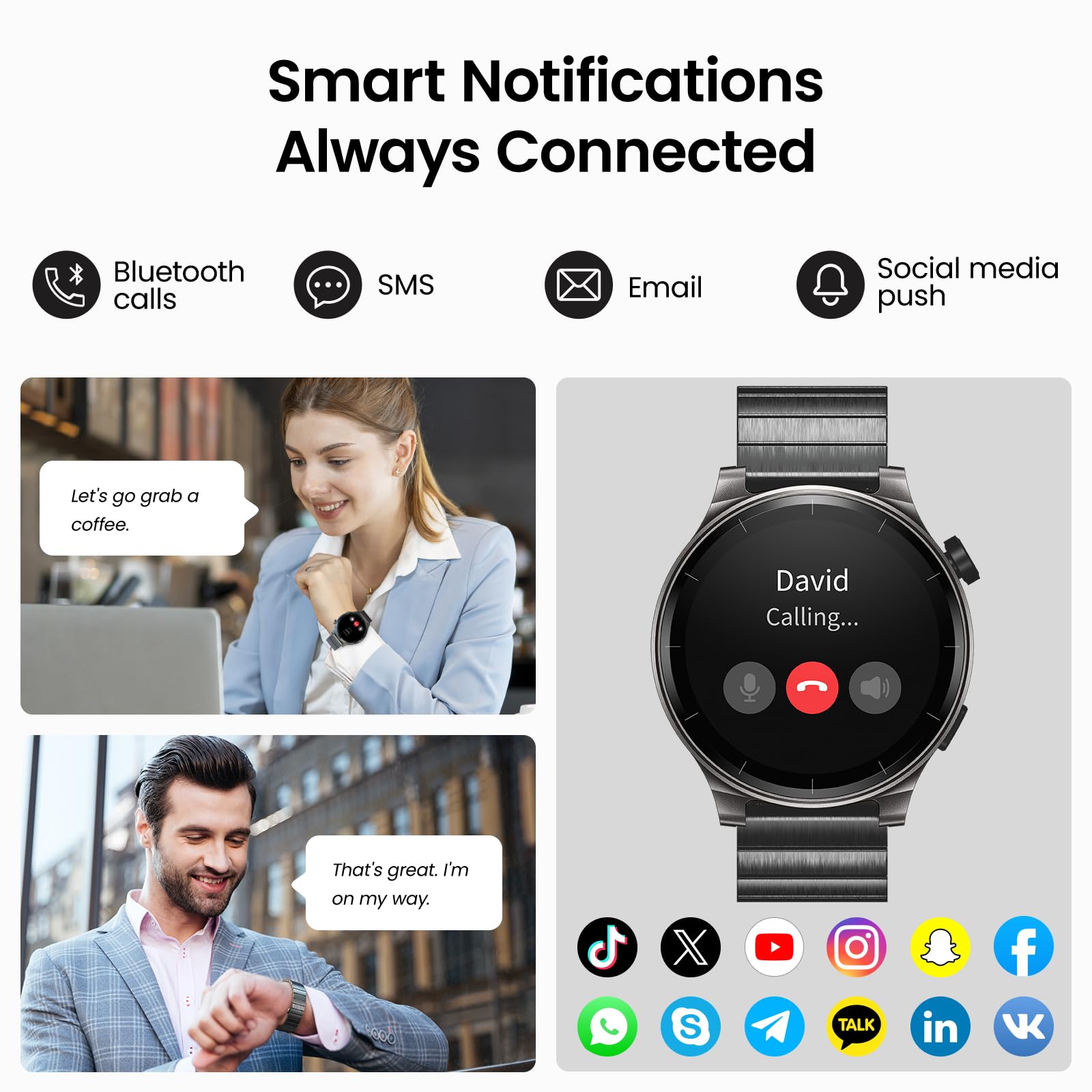 [Make/Answer Calls & Read Message] With a built-in microphone and speaker, you can easily answer and make calls via Bluetooth without taking out your phone. It also supports messages from Facebook, WhatsApp, Instagram and more. Whether you’re in a busy working environment or outdoors, you can always stay in touch with your family and friends.