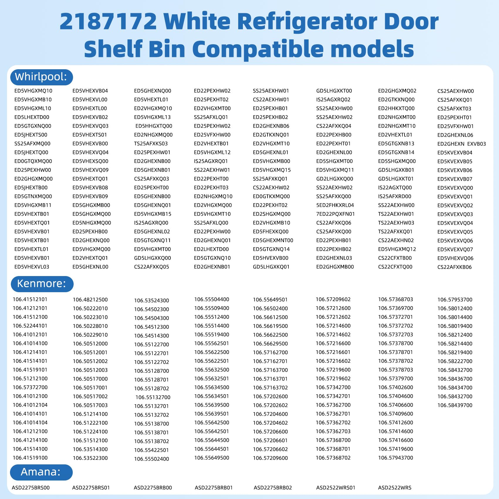 Works FOR Brands:2187172 refrigerator deep door bin shelf compatible with Frigidaire, Whirlpool, Kenmore, Roper, Amana, Crosley, and Estate refrigerators.