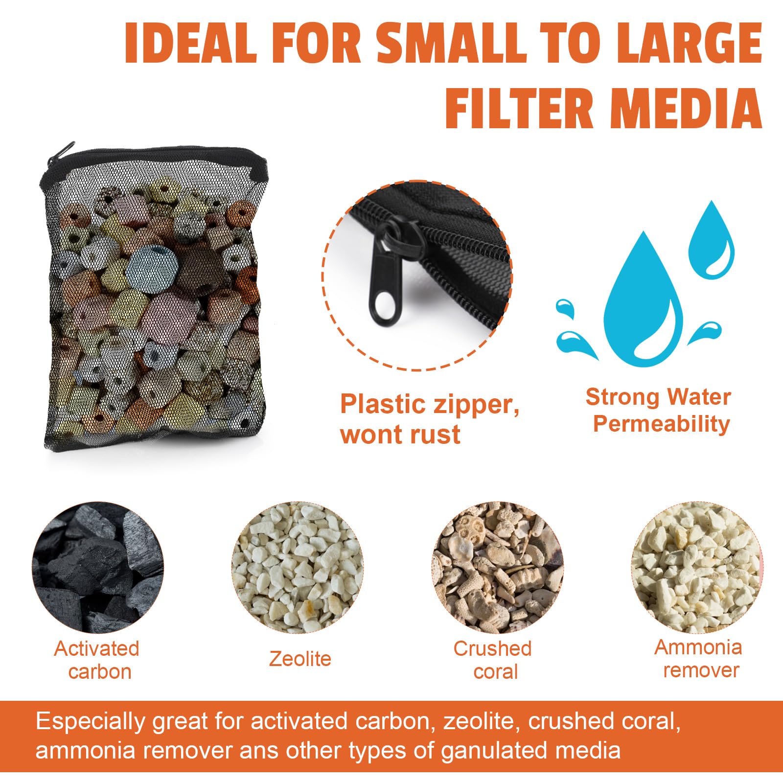 Wide Range of Uses:The filter media bag not only suitable for most types of filter materials (such as zeolite,peat,coral particles,etc.),but also can be used for other items storage and organization at home,school or office