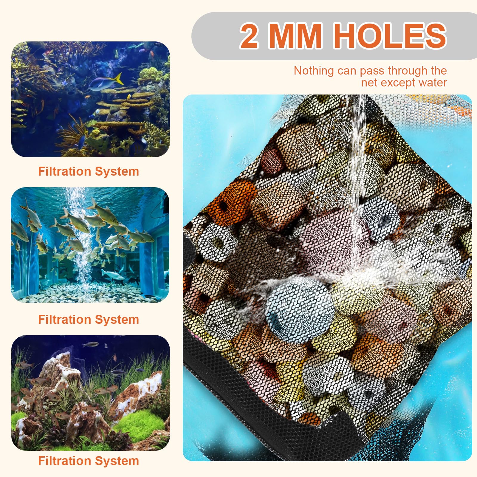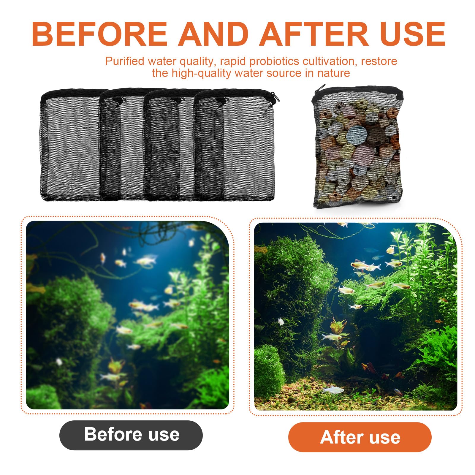 Reliability and Safety: The reusable aquarium media bag is washable and not easy to fade,without worrying about polluting the water body,providing a healthy living environment for fish