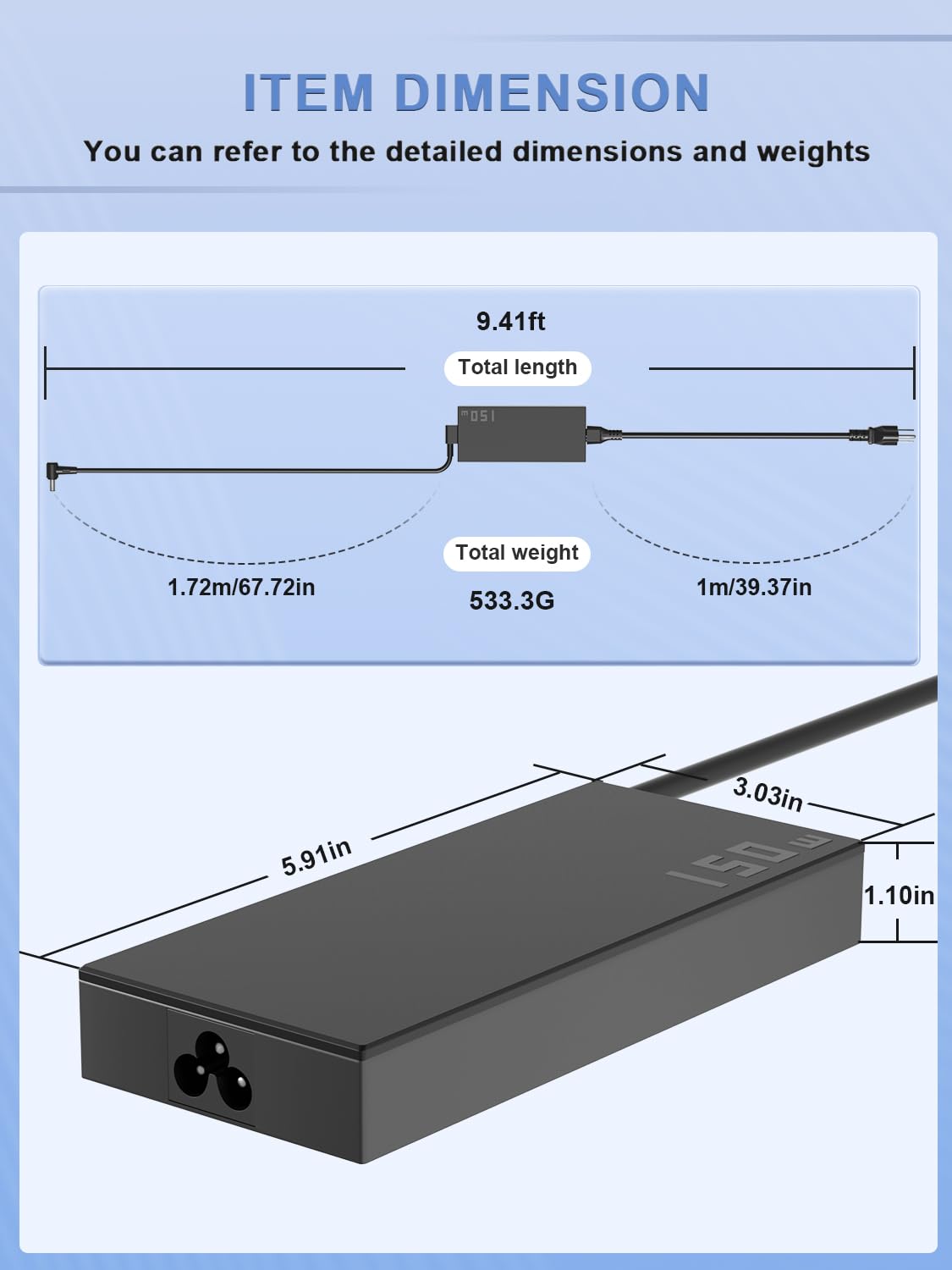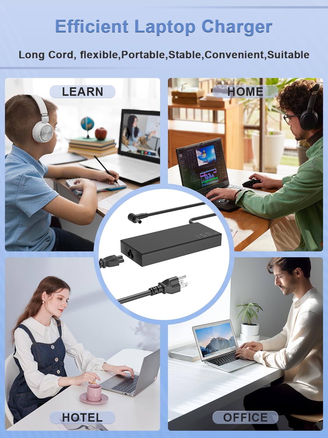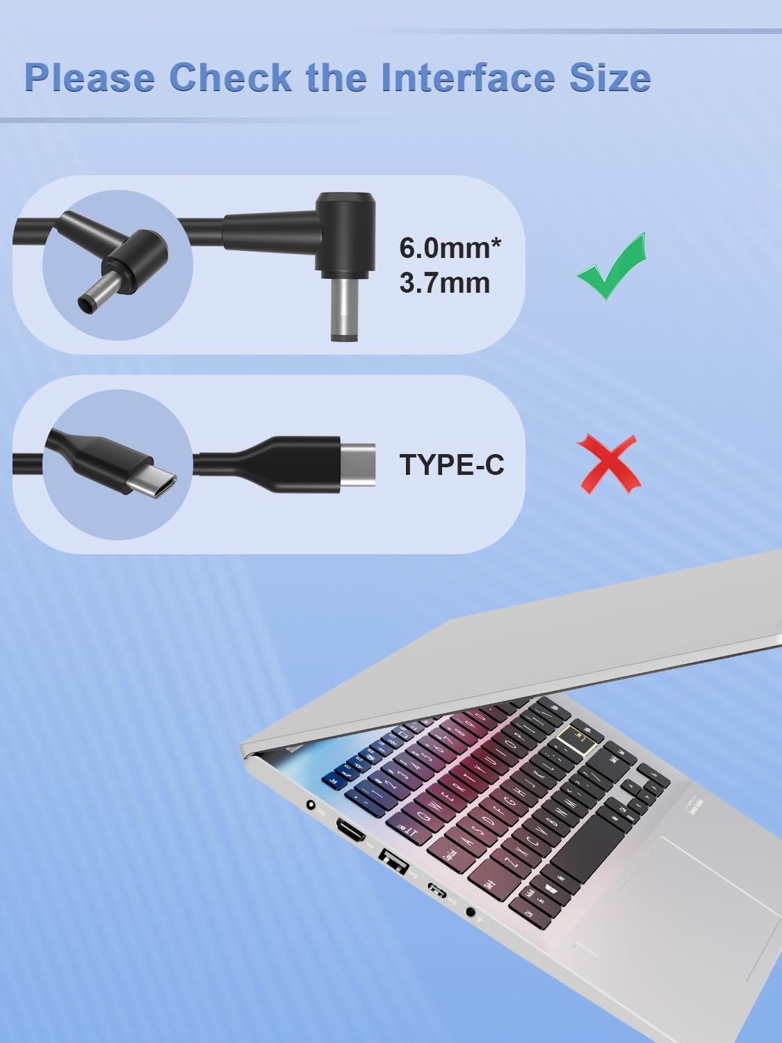Efficient charging --- This adapter provides a stable power output to ensure that your computer is kept in tip-top condition. Whether it's a busy morning or a temporary urgent need, it can quickly charge and restore the best condition of your device, so you don't have to worry about downtime. The durable design eliminates the need for frequent replacement, making it easy to support you at home, at school, at office, or on the go.