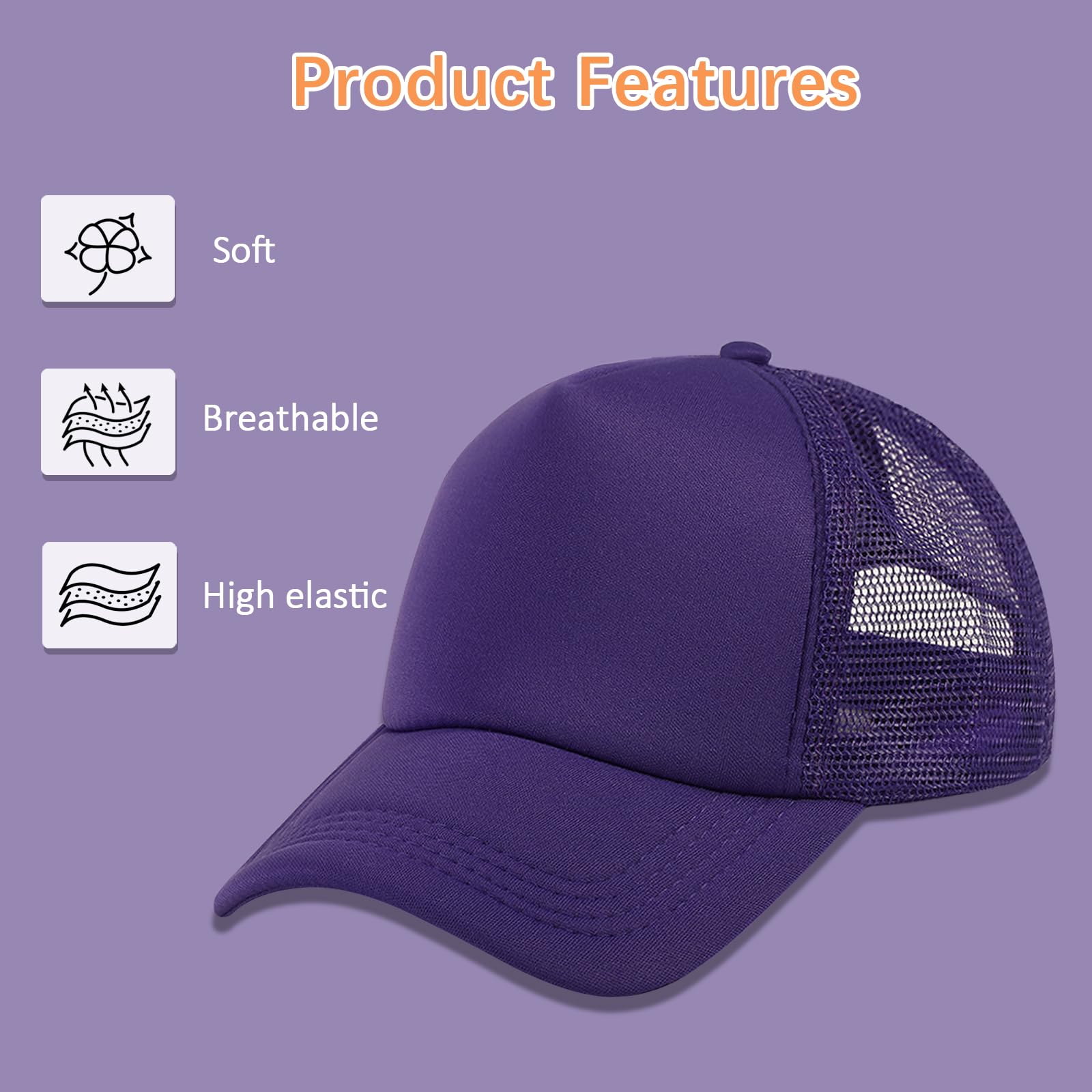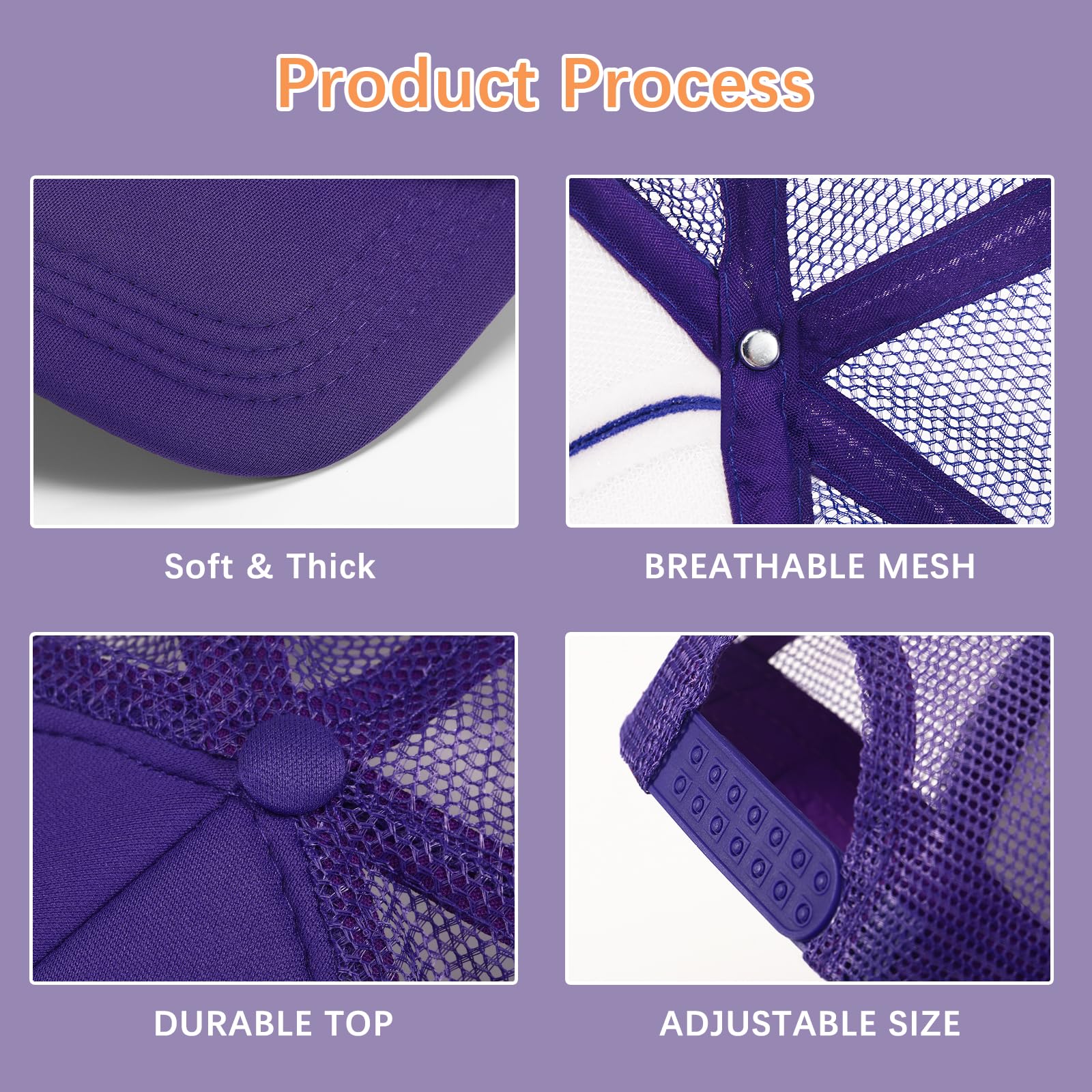 【Quality materials】Made from a durable blend of polyester and sponge fabric, our hats are lightweight and comfortable. The front panel and breathable mesh back ensure excellent ventilation , while the brim offers UV protection, making them ideal for outdoor activities