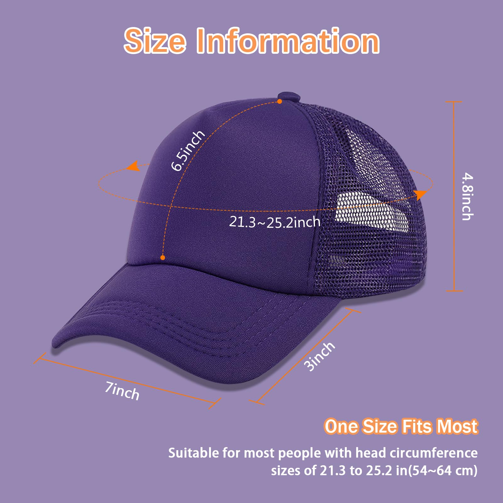 【One Size Fits Most】 These snapback caps come with an adjustable plastic buckle, accommodating most head sizes with a circumference of approximately 54-64 cm (21.5-25.2inches). Suitable for both women and men, these caps are an excellent choice for blank trucker hats, fitting a wide range of head shapes