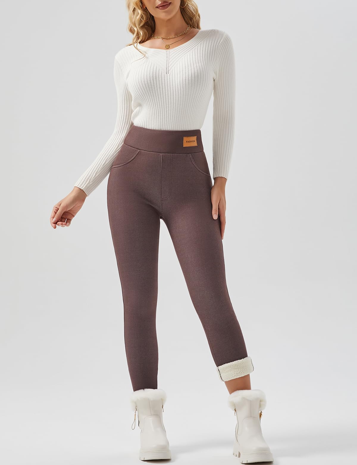 Fabric: 95%cotton/5%spandex,and lining is 95%polyester/5%spandex. This slim legging is soft thick fleece sherpa lining inside and cotton fabric outside,not thin fabric. So this women stretchy fleece tights is warm, thermal and pretty suitable for winter and cold weather and pretty suitable for winter and cold weather