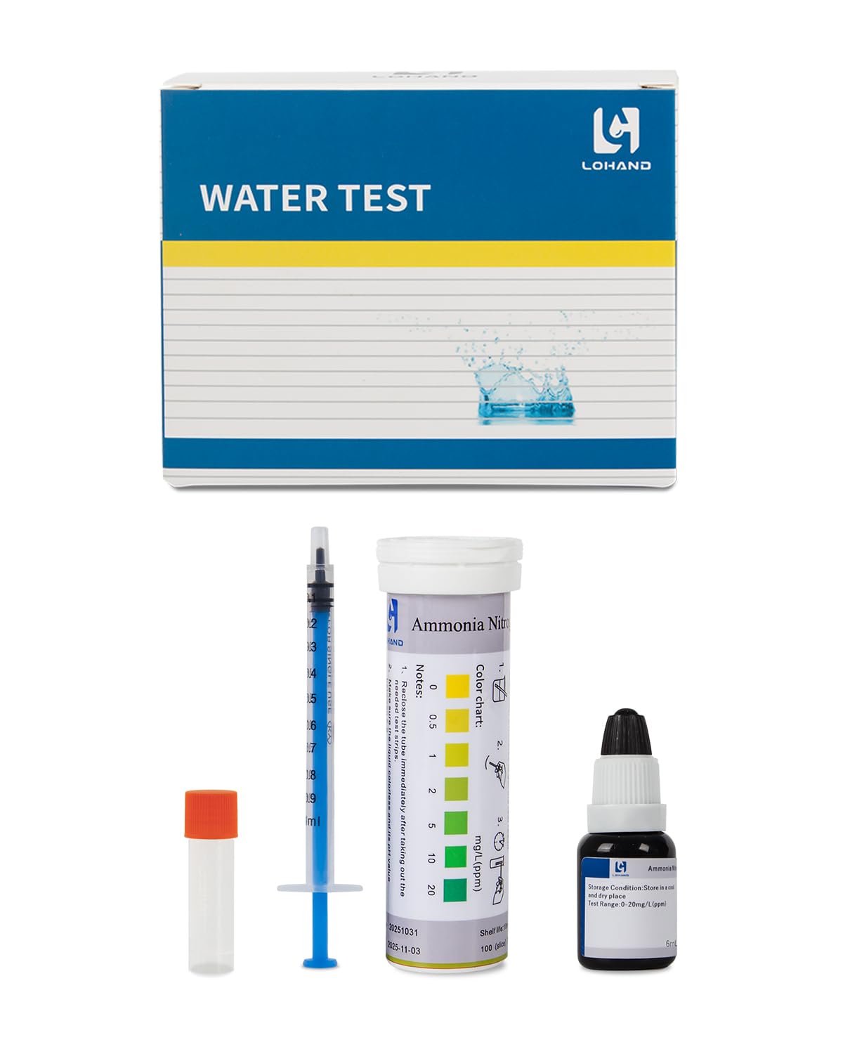 Fast and accurate fish tank test strips: Employs a chromogenic reaction principle, it can determine and read the ammonia nitrogen concentration in water within a relatively short time. Equipped with 6ml of Ammonia Nitrogen Activator, to make the measurement results more accurate.
