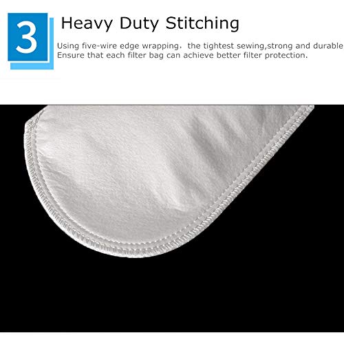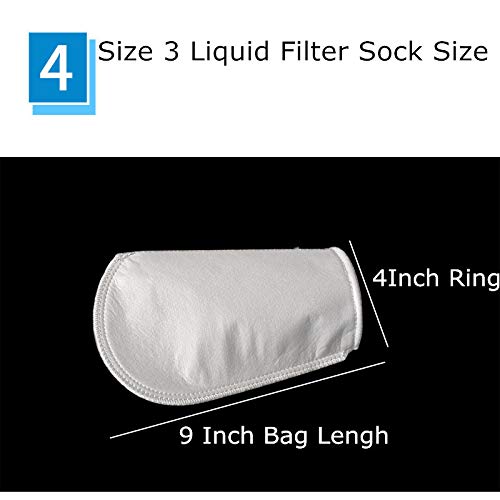 Material: High Quality Polypropylene Bag , Stainless steel ring Micron rating: Available in 1micron , 5 micron ,10 micron , 25 micron , 50 micron, 75 micron and 100 micron,150 micron Ring width: 4 Inches Length: 9 inches (Long) Package Included: Pack of 2