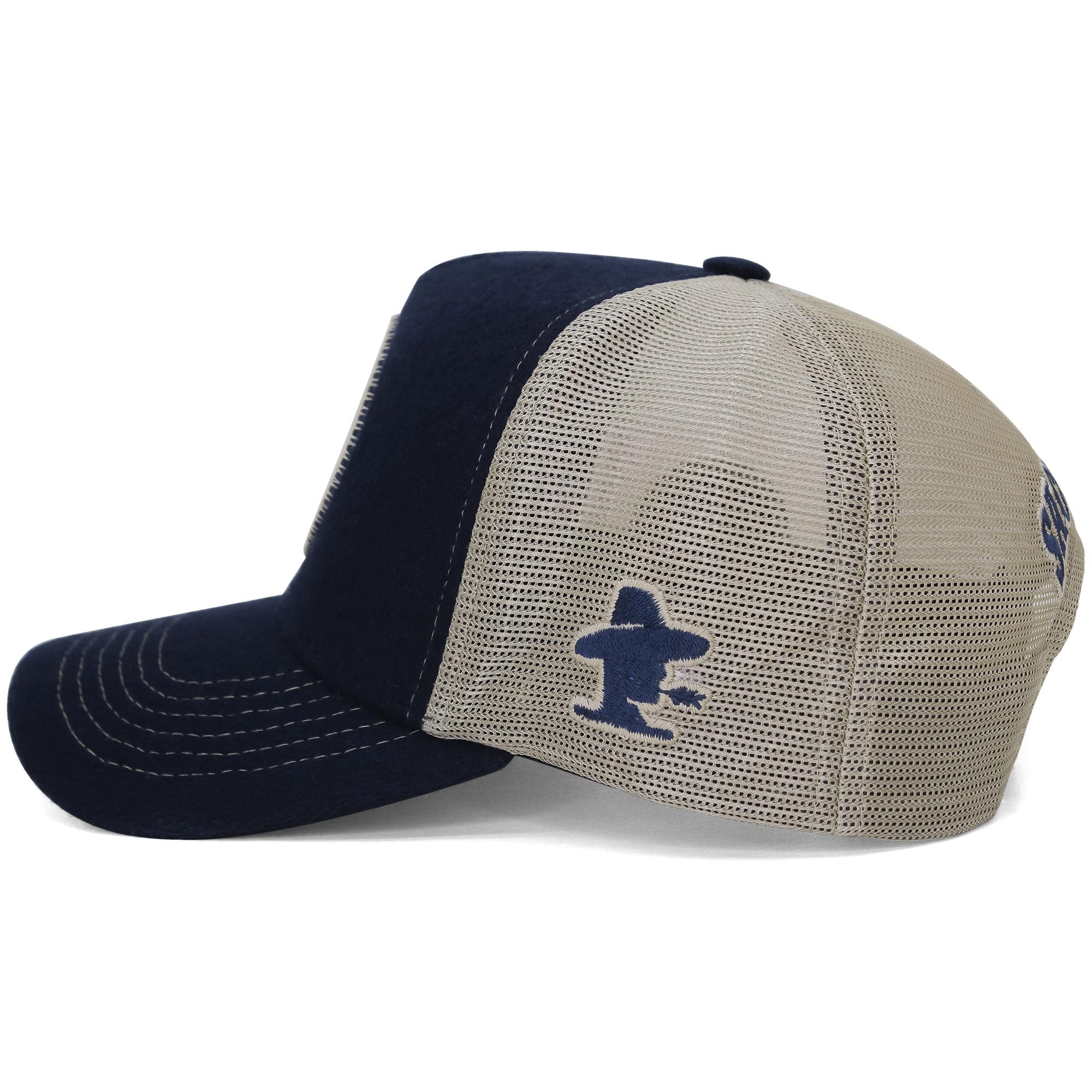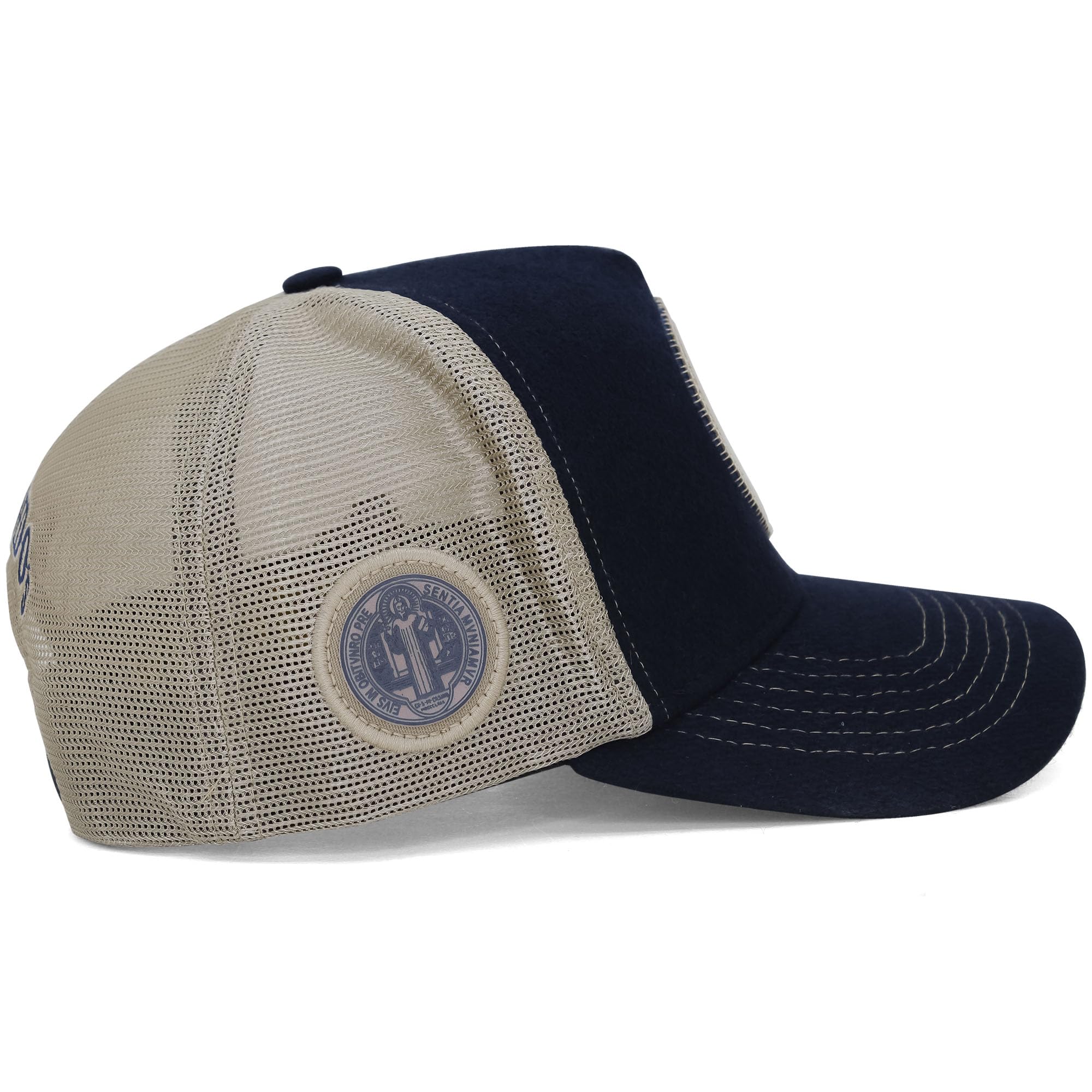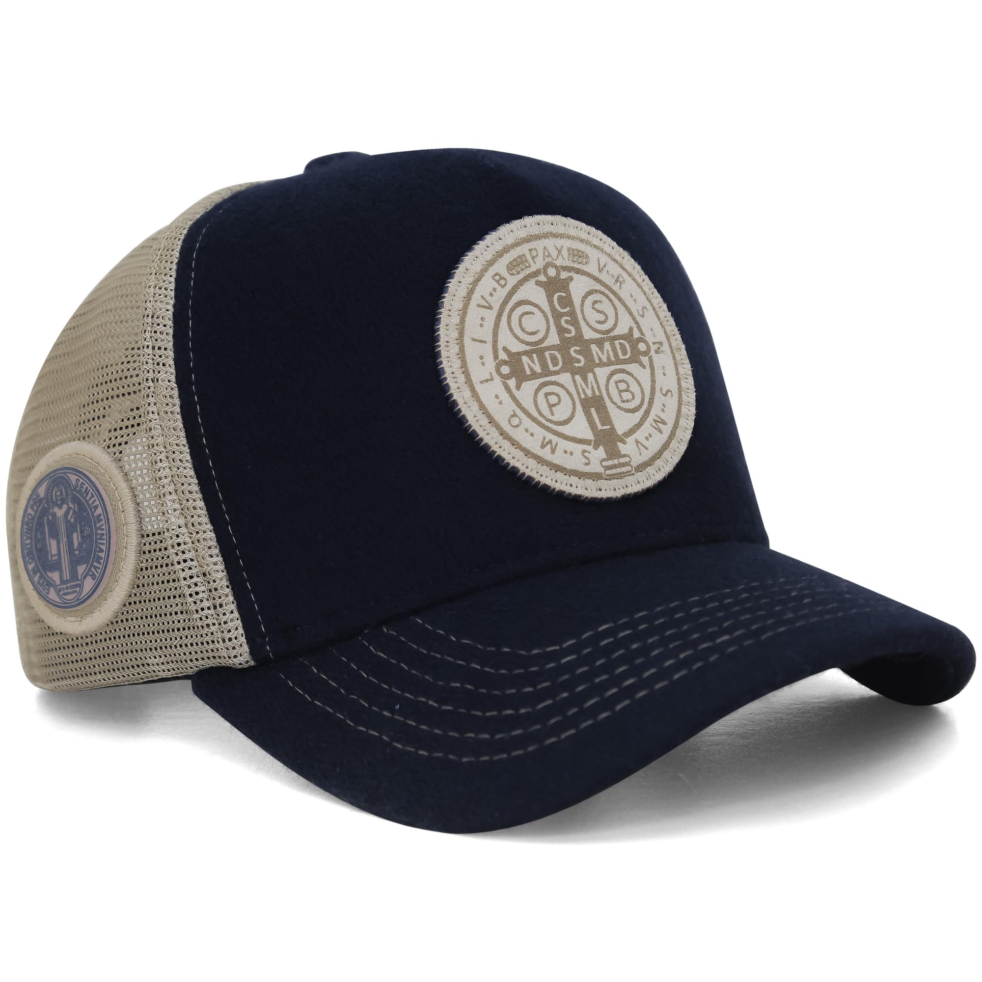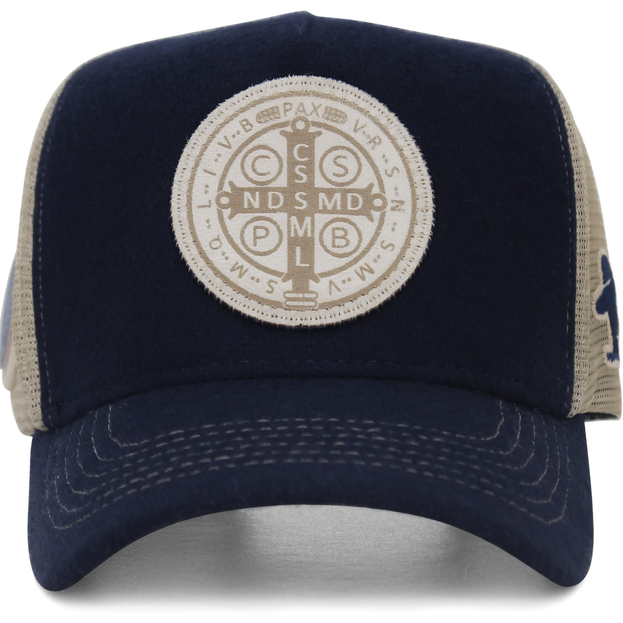 Sacudido's | Trucker Cap Saint Benedict - Snapback Hats, Adjustable, Unisex, Great for Hunting (US, Alpha, One Size, Medium, Blue-Beige)