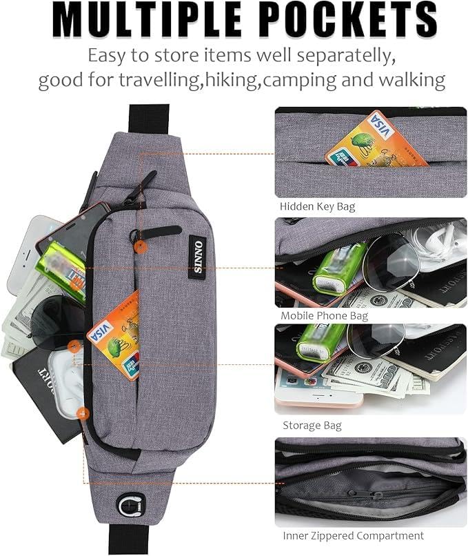【Have More Safety and Fun】With our creative design womens mens fanny pack,a small hidden zipper compartment inside the main pocket perfect for your valuables for extra security.The headphone hole allows you to listen to music or the function of call during fitness and walking so that you can free your hands to enjoy your personal time.
