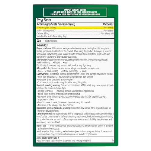 Excedrin migraine pain relief caplets combine acetaminophen, aspirin and caffeine