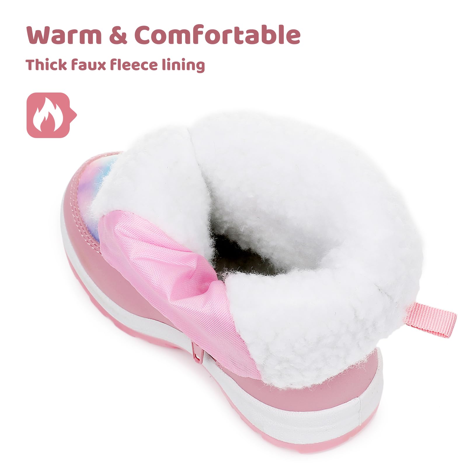 Plush faux fur lining for extra coziness, cushioned footbed to keep them comfortable all day.