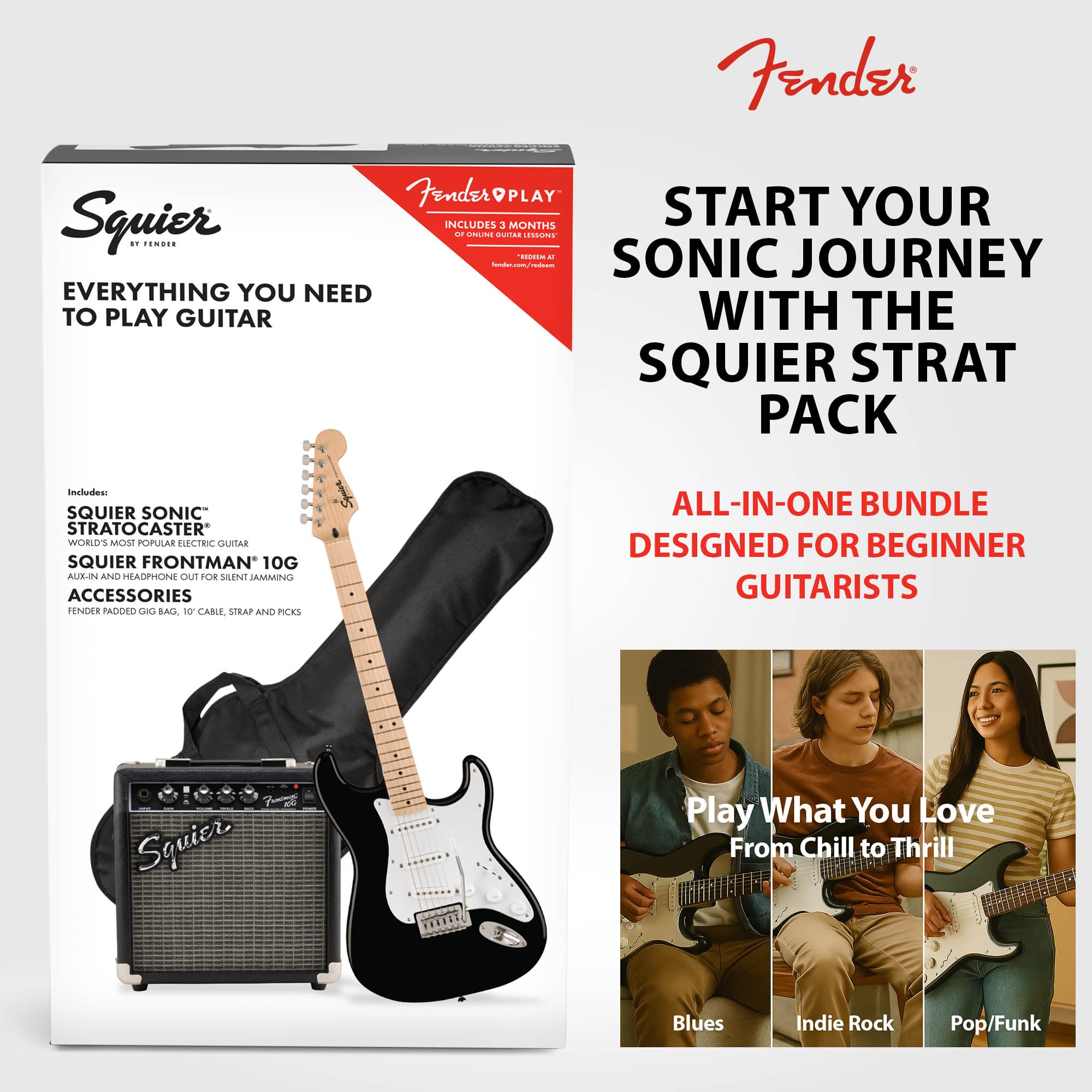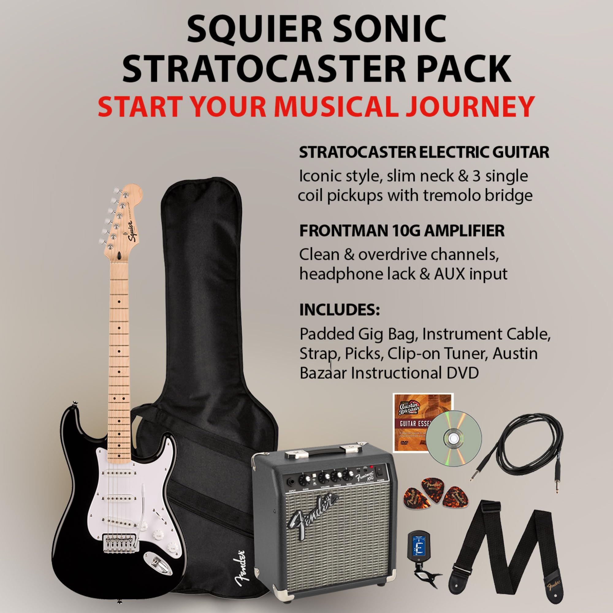 EVERYTHING IN ONE BOX: Bundle includes Frontman 10g Amp, Gig Bag, Strap, Cable, Picks, Fender Play, and Austin Bazaar Guitar DVD
