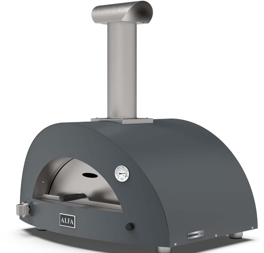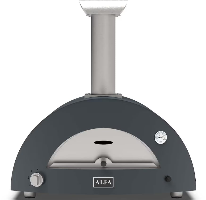 Two 10 ― 12 inch pizzas Reaches over 900 F propane Gas hybrid w/ kit sold separately Comes with adjustable feet Heat Genius Technology Functional design and attention to detail combined with the best of Alfa technology make the 2 Pizze propane gas oven in antique red an exceptionally high ― performance cooking tool that blends perfectly in modern outdoor spaces. 2 Pizze is available in a wood ― fired or gas ― fired version, but thanks to the practical Hybrid Kit, you can decide to cook with wood in the gas ― fired model, choosing which fuel to use to best cook your recipes.