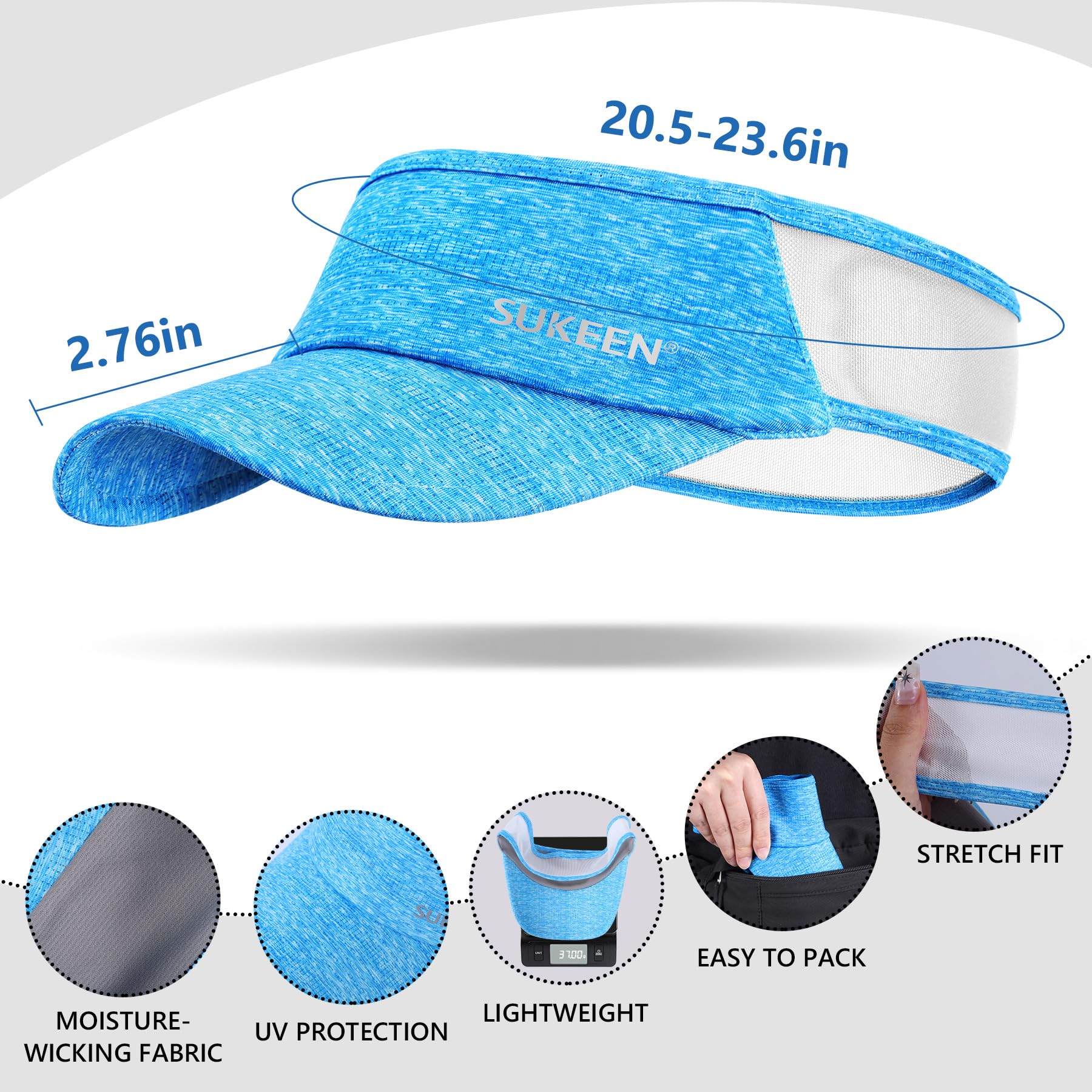 STRETCH FIT & BREATHABLE: Designed with a stretchy fabric band, the Sukeen Sports Sun Visor offers a comfortable and secure fit, with a head circumference range of 20.5-23.6in (52-60cm). The mesh design of the fabric band promotes breathability, allowing for better airflow and ventilation.