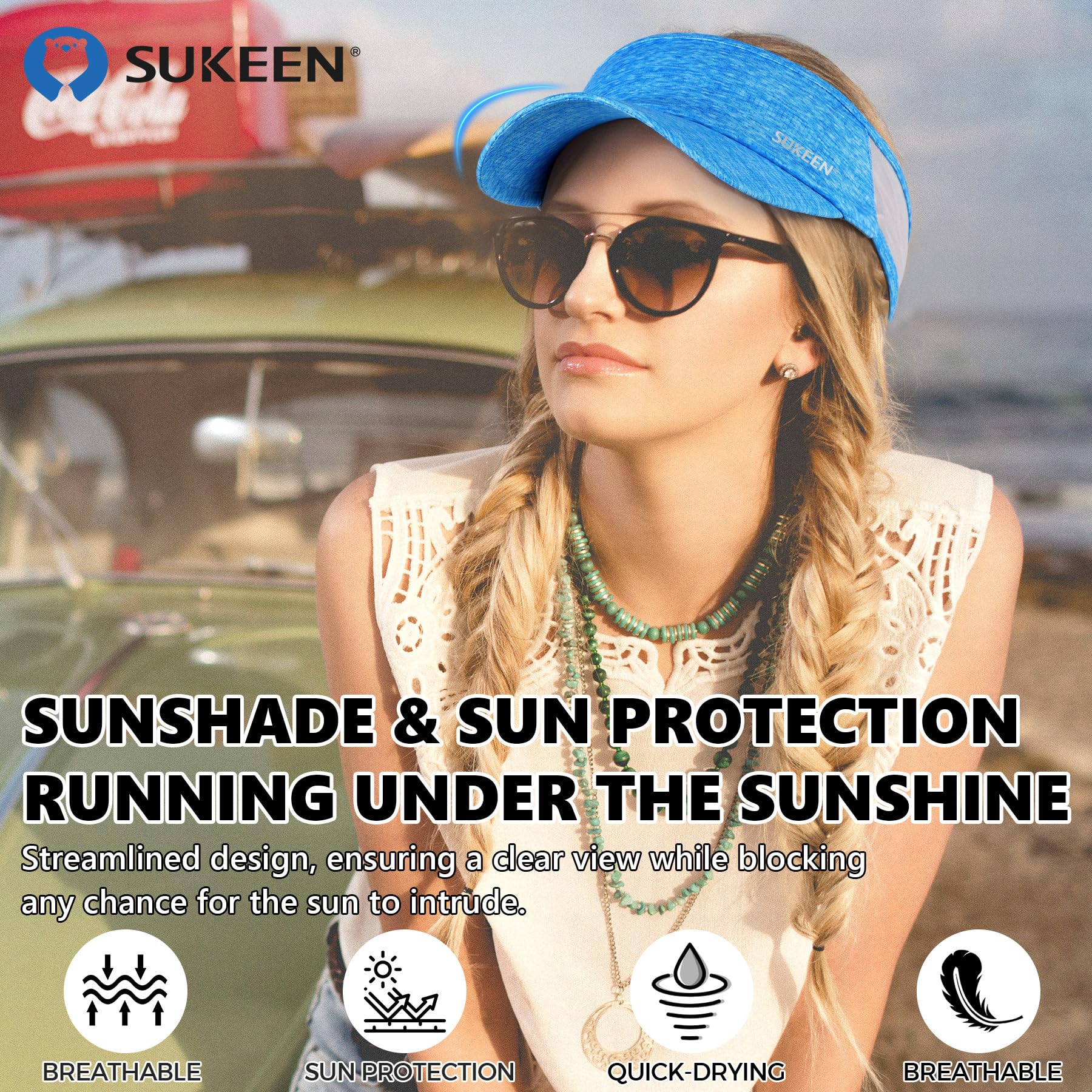 WIDELY USE & HIGH QUALITY: The Sukeen Sports Visor is suitable for a wide range of activities, including running, hiking, fishing, golf, tennis, baseball, softball, and pickleball. It is machine washable, reusable, and features a chemical-free cooling fabric technology that will never wash off. With optimal visibility and sun protection, this lightweight cooling visor allows you to focus on your activities without any distractions.