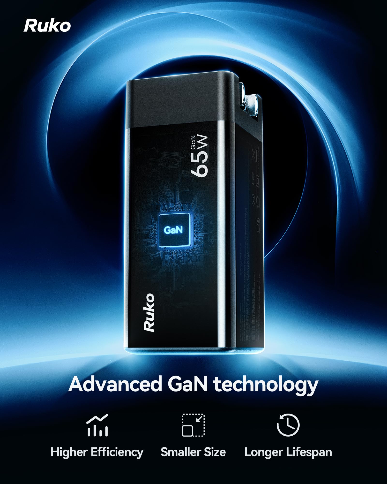 PORTABLE & TRAVEL-READY: The Ruko PD65W USB-C Charger features a compact, foldable design that slips easily into your pocket, bag, or carry-on. Perfect for daily use and travel.