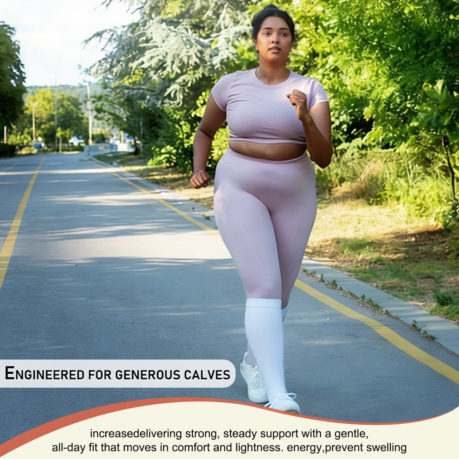 【Plus Size Calves】-These comfortable wide calf compression socks is ready and perfect for men & women, who wears in exlarge or plus size,that are supportive for plus size calves. More comfortable than normal size compression socks, these big and tall calf compression socks bring you strong leg support and long lasting graduated compression, as well as ultra comfortable wear of lightweight and breathable. These large compression socks keep your muscles warm and support all day.