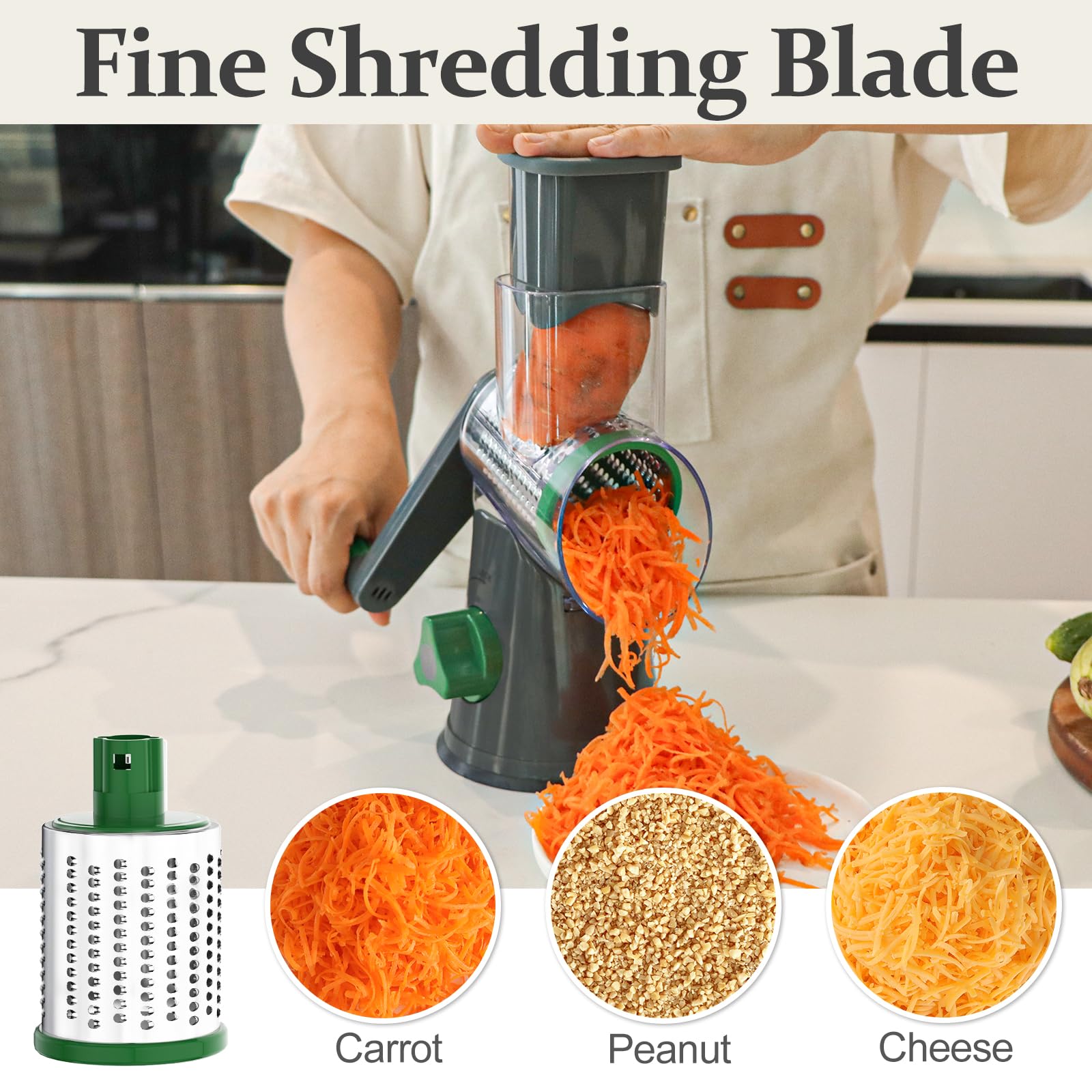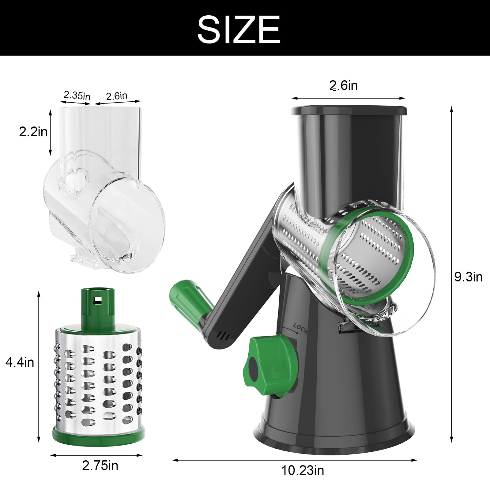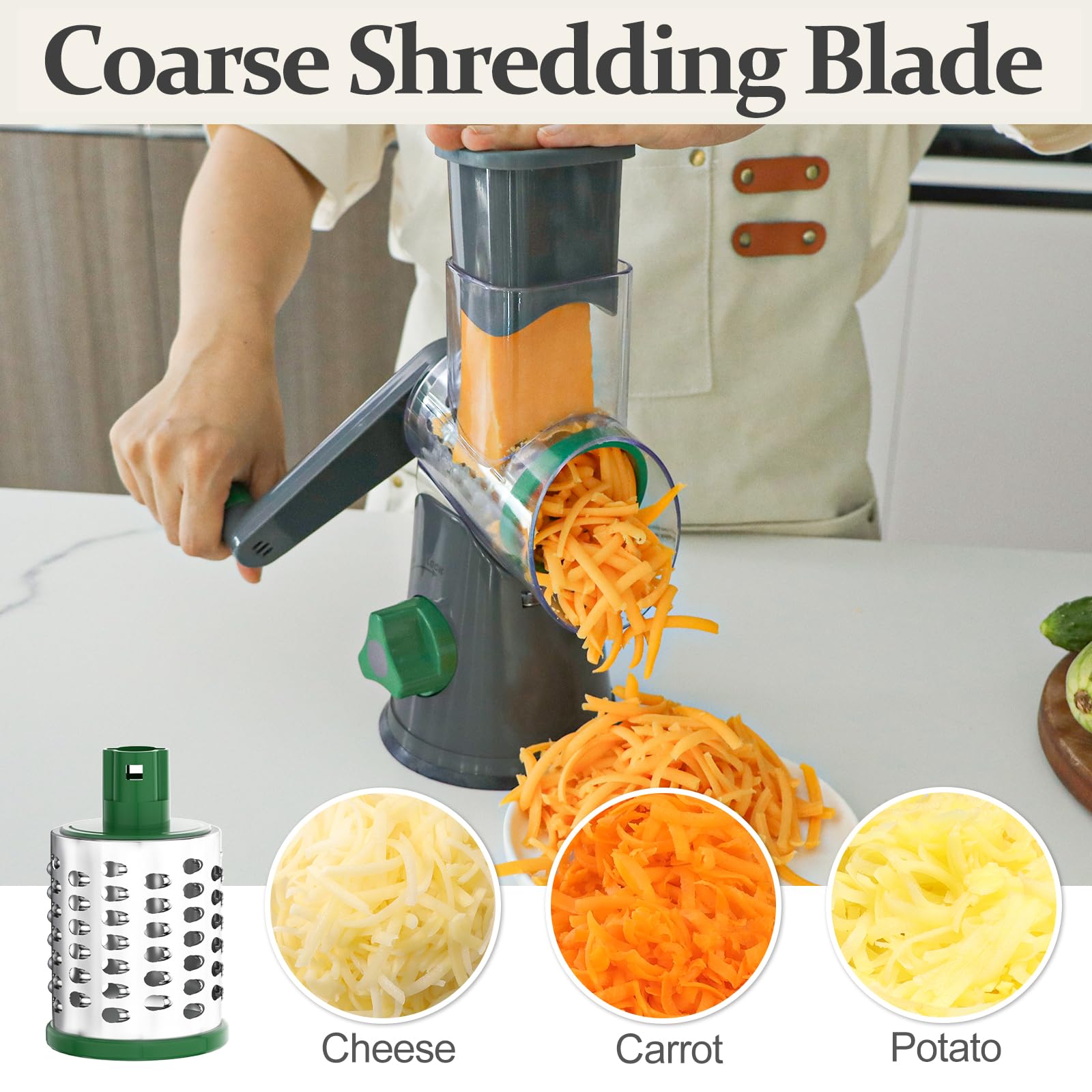 Three Blades: Coarse shredding blade, fine shredding blade with different diameter ; One slicing blades; A pound of cheese is only 30 seconds, avoid contact between fingers and blades