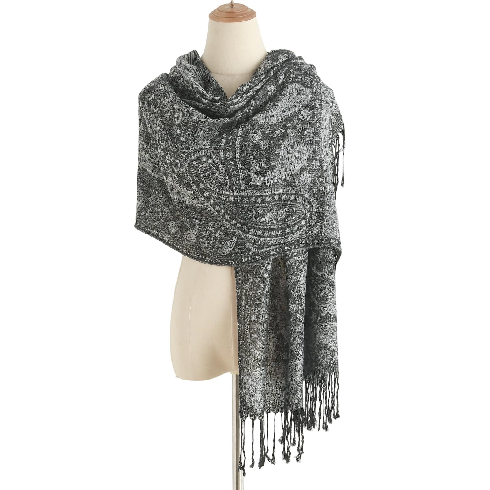 ETHNIC JACQUARD PAISLEY DESIGN: --The black silver pashmina shawl is Elegant and retro paisley pattern design, full of artistic sense, easy to match with a variety of styles and enhance the overall fashion