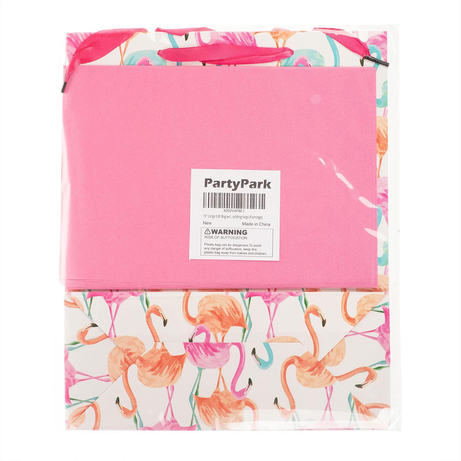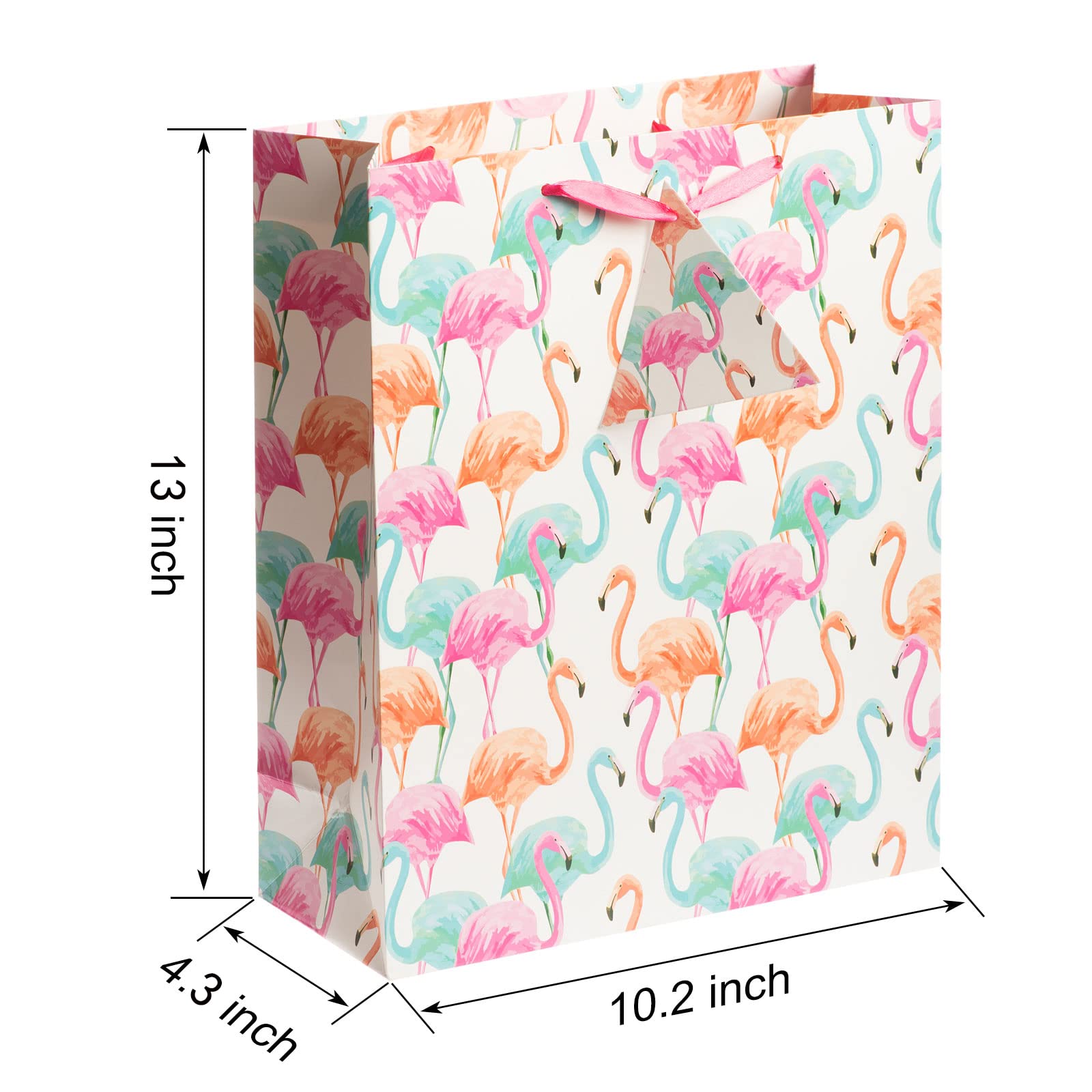Elegant gift bag features a Flamingo design. Each gift bag comes with a label and 3 sheets of paper towels.
