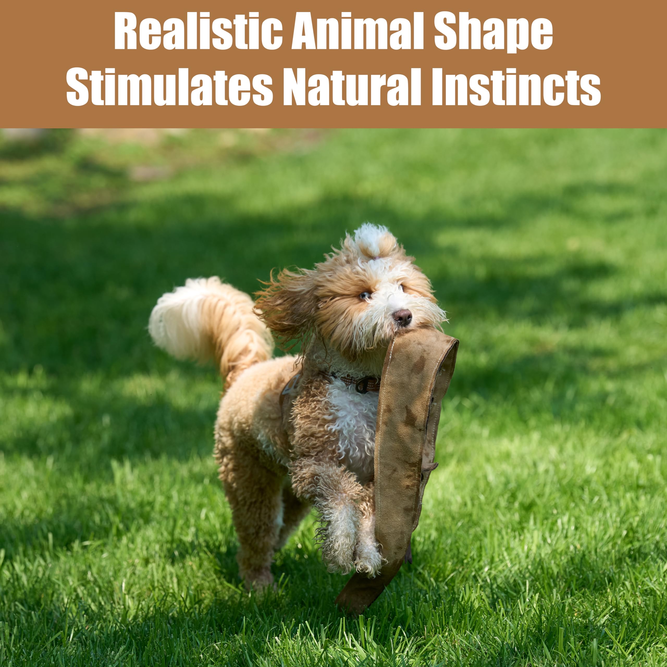 Genuine Leather Construction- Crafted with fused real leather layers for a natural texture dogs love. Built for longer-lasting fun compared to ordinary plush toys—perfect for dogs who enjoy a tougher chew.