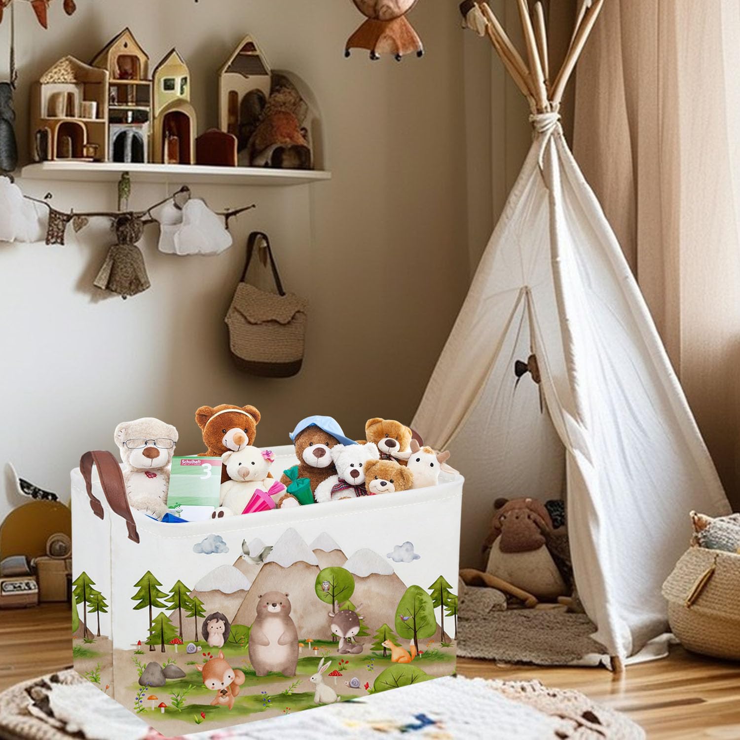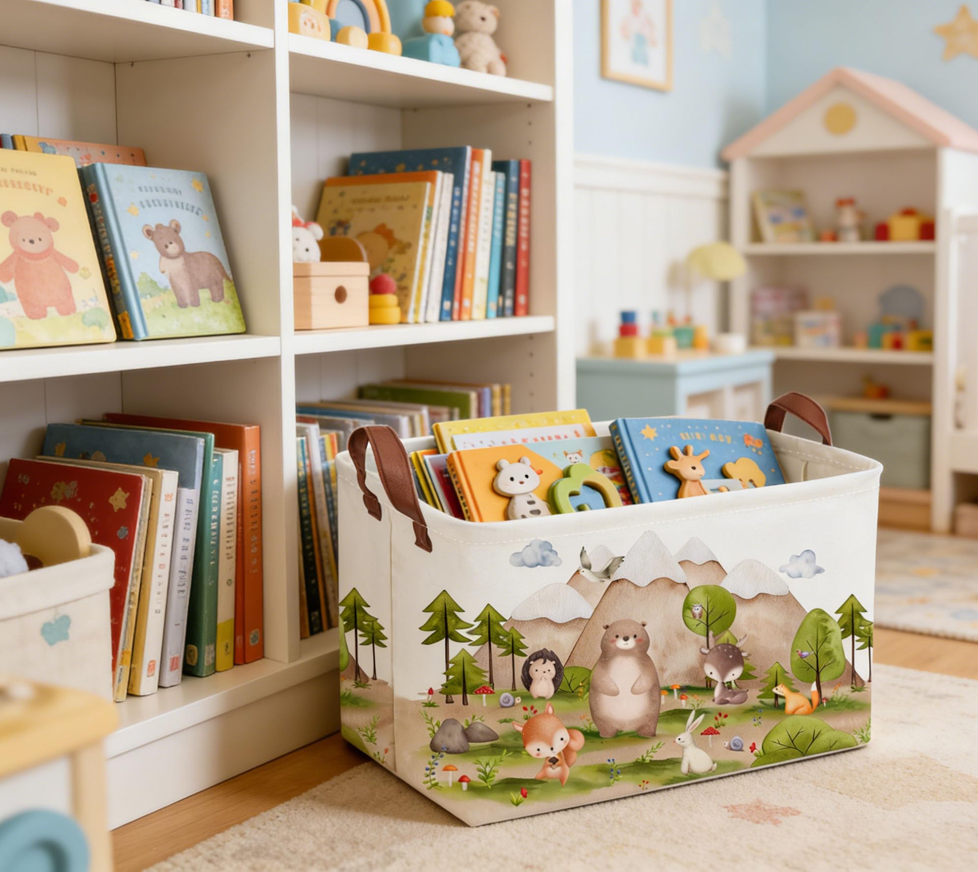 Material Leather Handles:The storage box equip with two strong handles,easy to move. Special extended leather handle, more convenient and durable. Application Children's' magazines, craft supplies, and more with these sturdy. Everyday bins that can be tucked away in closets, side tables, under beds, left out in the open to enhance decor, or on a shelf. Note: Collapsible organizer bin ,Package by folding. Please understand that wrinkles may occur during transportation. if you have any question, please do not hesitate to contact us.