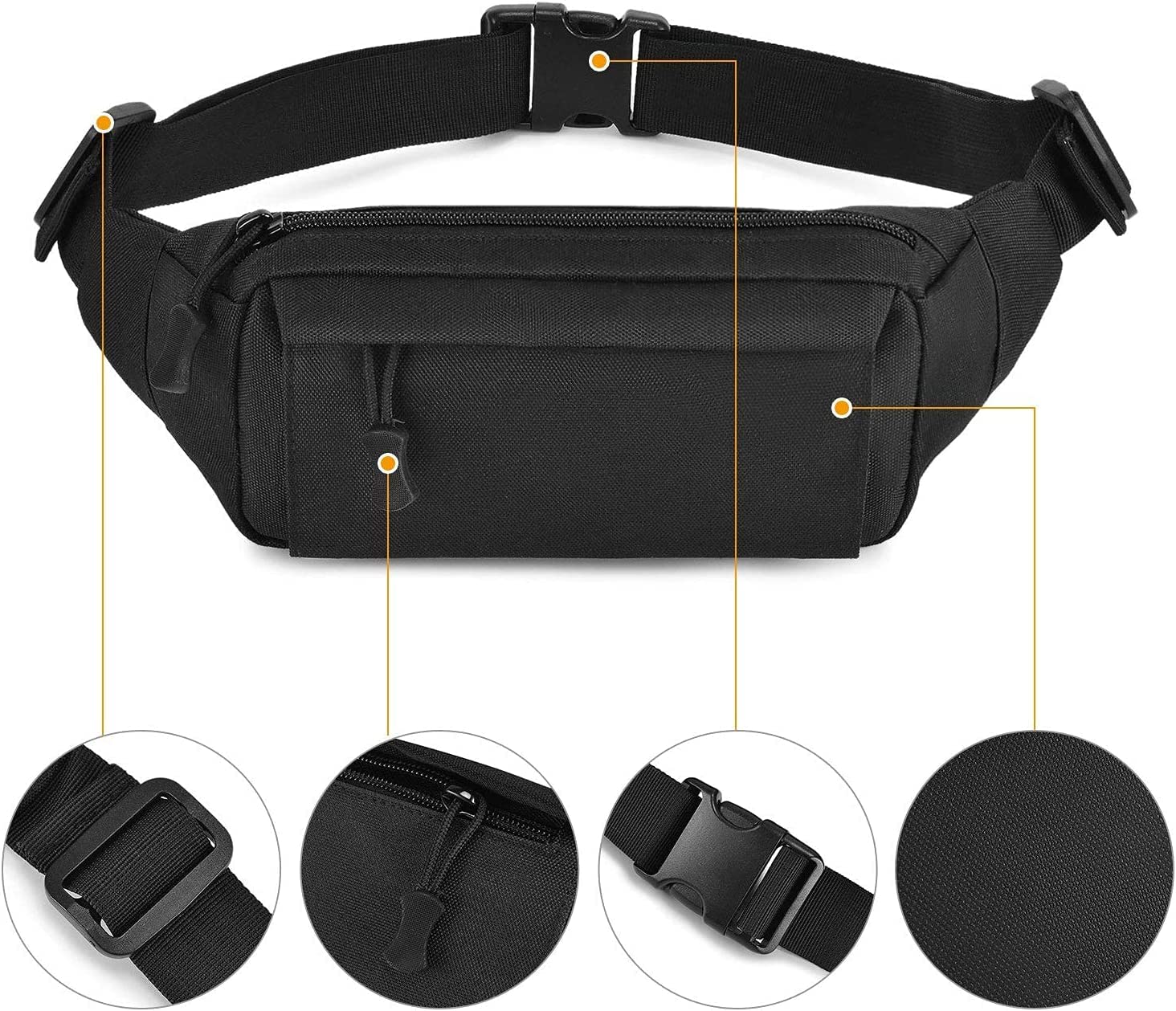 SUNELFFY tactical fanny bag is made of high-quality 900D nylon, scratch-resistant,Water resistance.The zipper is smooth. It is light-weight,also anti-splash,anti-tear,air-permeable.