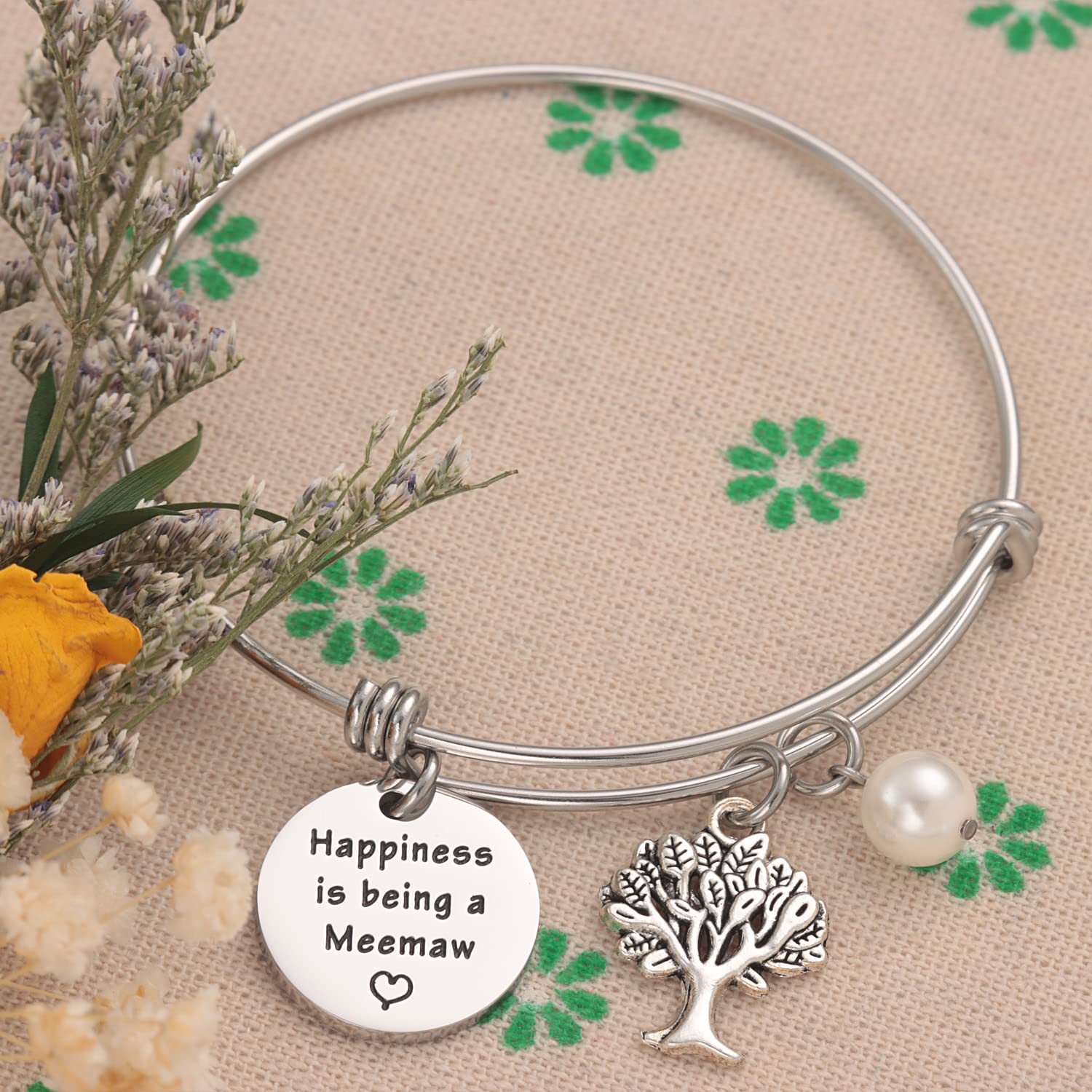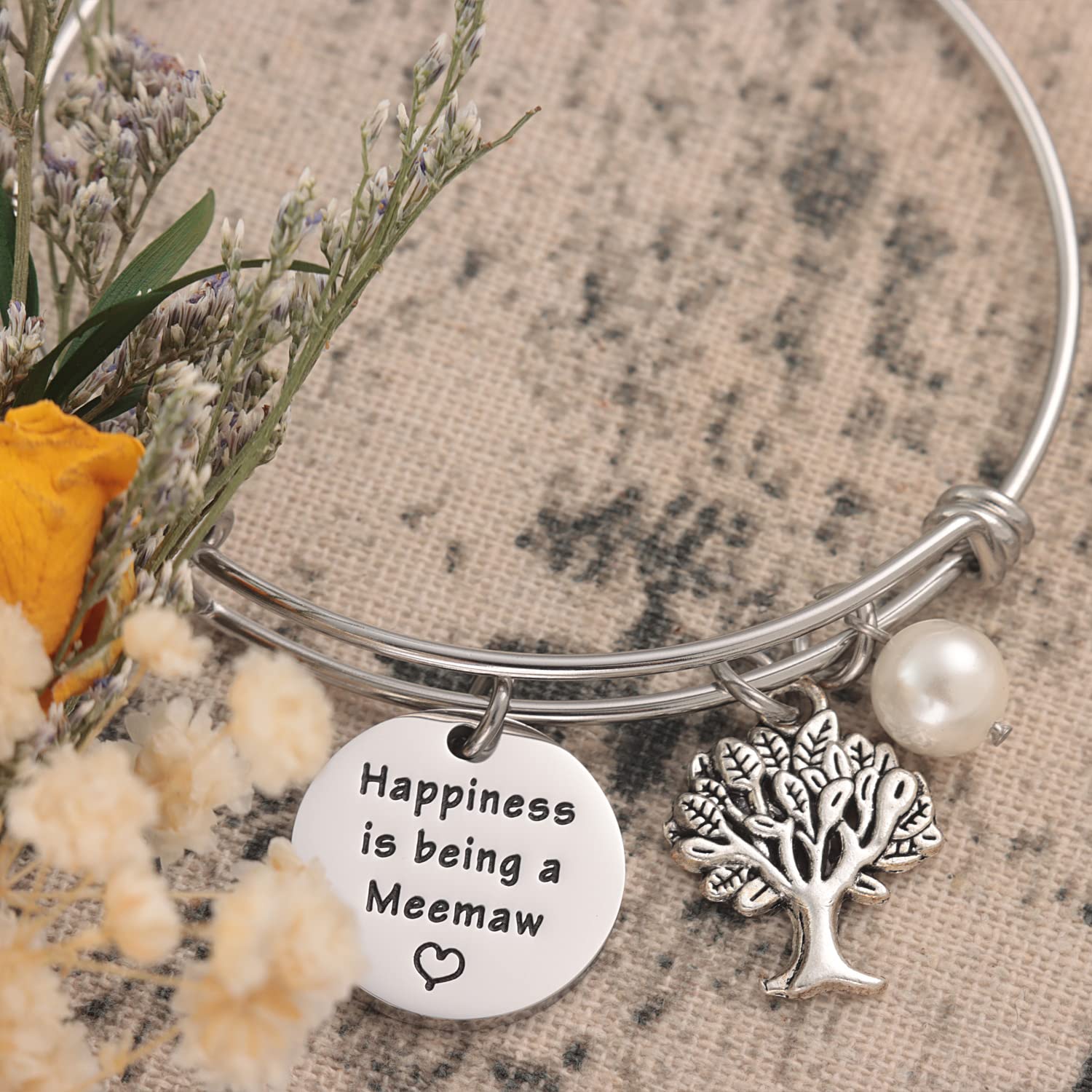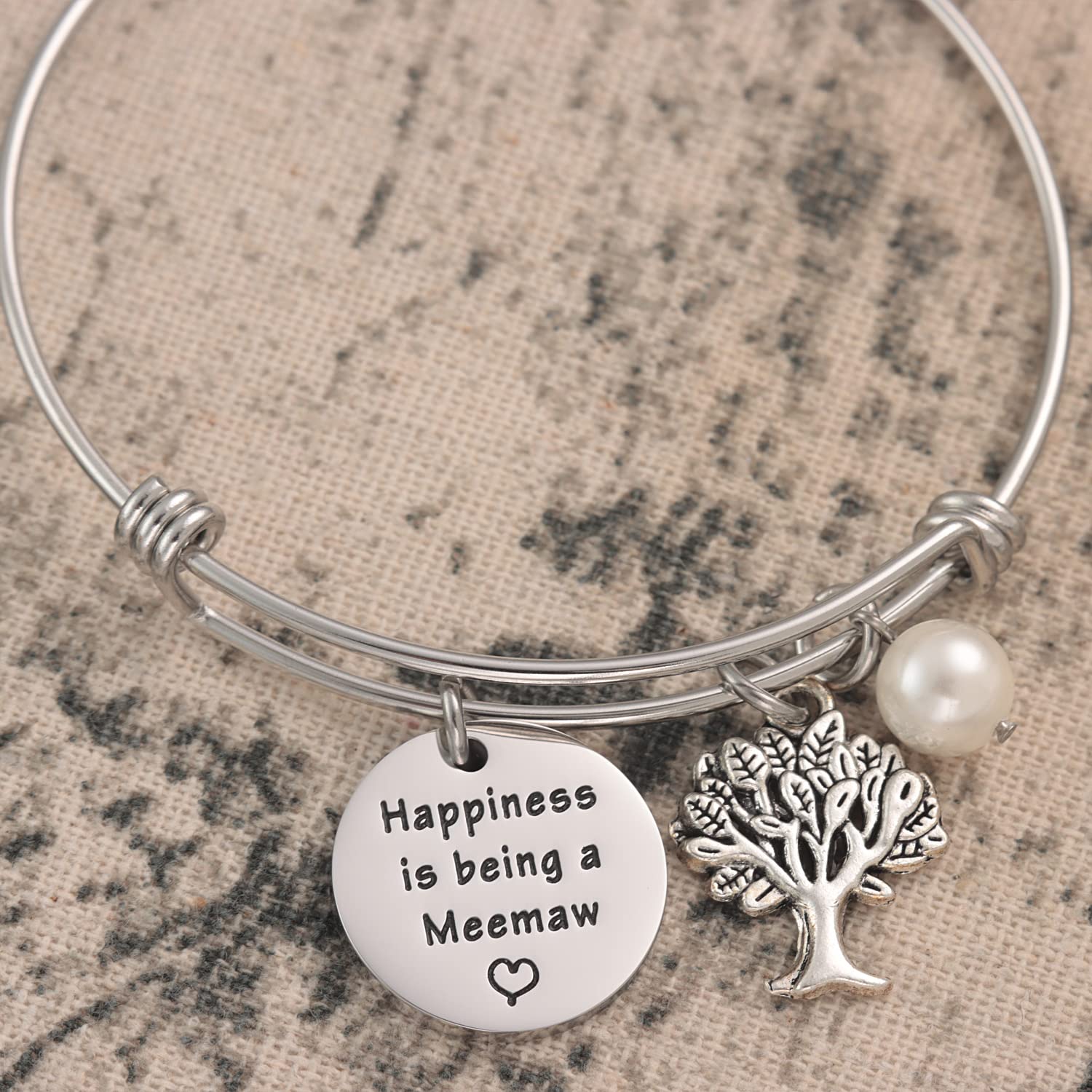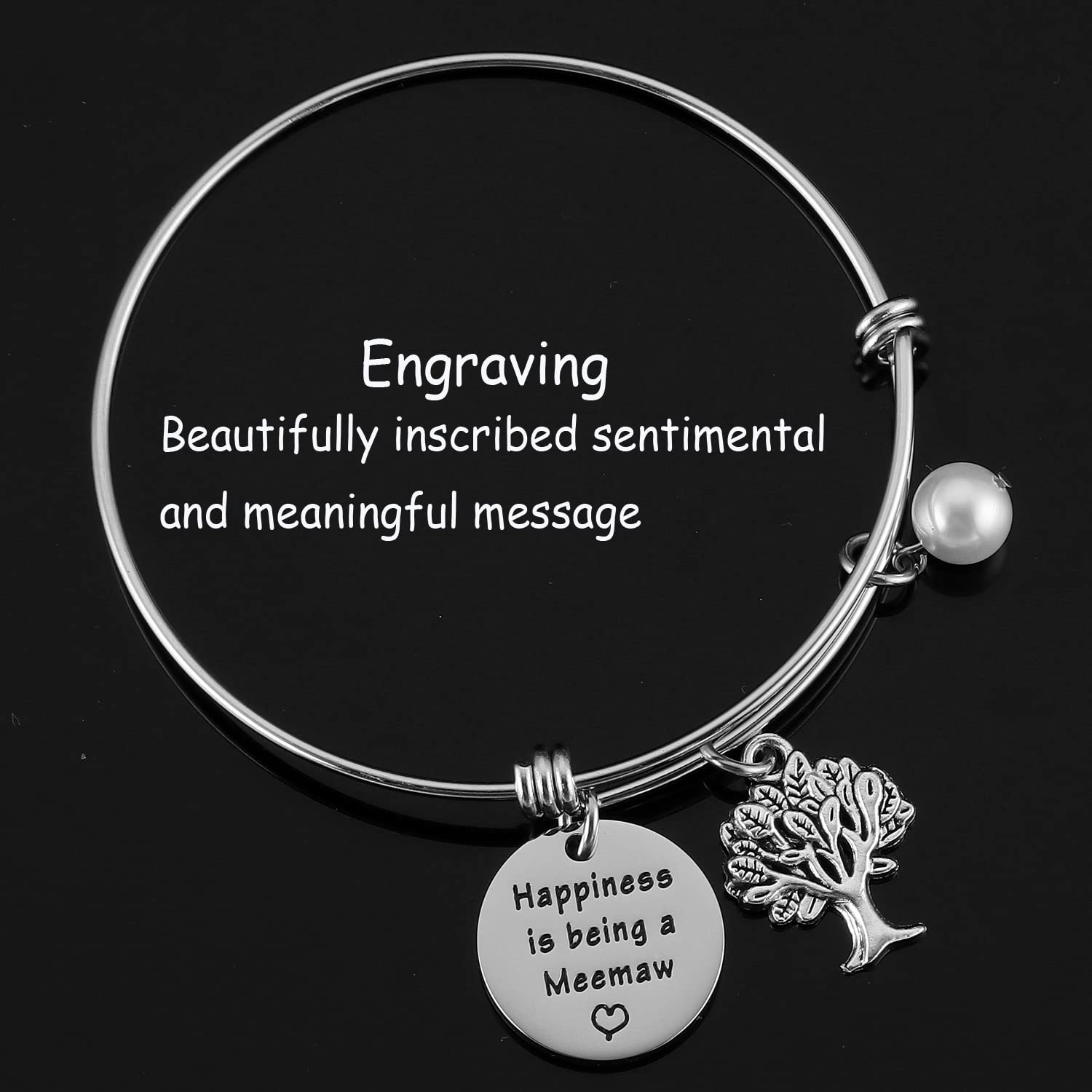 💗💗New Meemaw Jewelry For Best Grandma Birthday💗💗-------Engraved with the sentence “Happiness is being a Meemaw.”Best Gift for a grandma to be.Promoted to Grandma.The transition from mother to grandmother means the birth of a new baby and the arrival of a new life in the family, which is an exciting and unforgettable time. This unique bracelet is everything you've been looking for and is perfect for festival season!