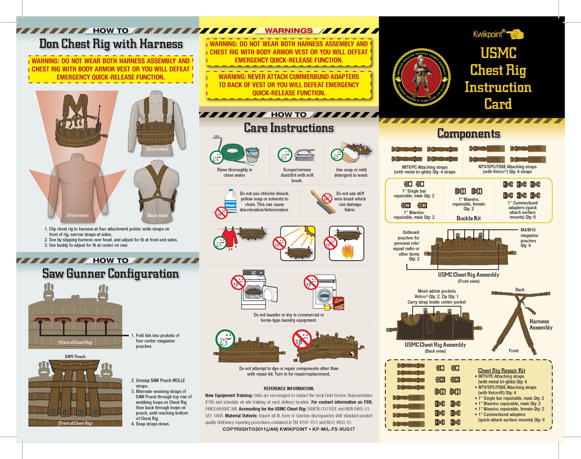Description These Genuine Issued Chest rigs are constructed of durable and tough nylon Cordura. These chest rigs are also referred to as (TAP) Vest. The (TAP) replaces the FLC to allow quick-release of equipment in emergencies. TAP is compatible with the quick release system of the improved outer tactical vest (IOTV) and Soldier Plate Carrier System (SPCS). They are ideal for outdoor enthusiasts as they feature multiple pouches to insert your gear safely. It features several magazine pouches intended to fit M4/M16 mags. Components: (1) One Chest Rig with eight (8) pouches (1) One Adjustable harness (4) Four IMTV/PC Attaching Straps (with metal tri-glide) (4) Four MTV/SPC/FSBE Attaching Straps (with Velcro) (2) Two 1” Single bar repairable male buckle (2) Two 1” Waveloc repairable male buckle (2) Two 1” Waveloc repairable female buckle (6) Six 1” Cummerbund adapters (quick attach surface mounts Care Instructions: Rinse thoroughly in clean water, scrape with a soft, bristle brush to remove dirt and soil, use soap or mild detergent to wash, air dry.
