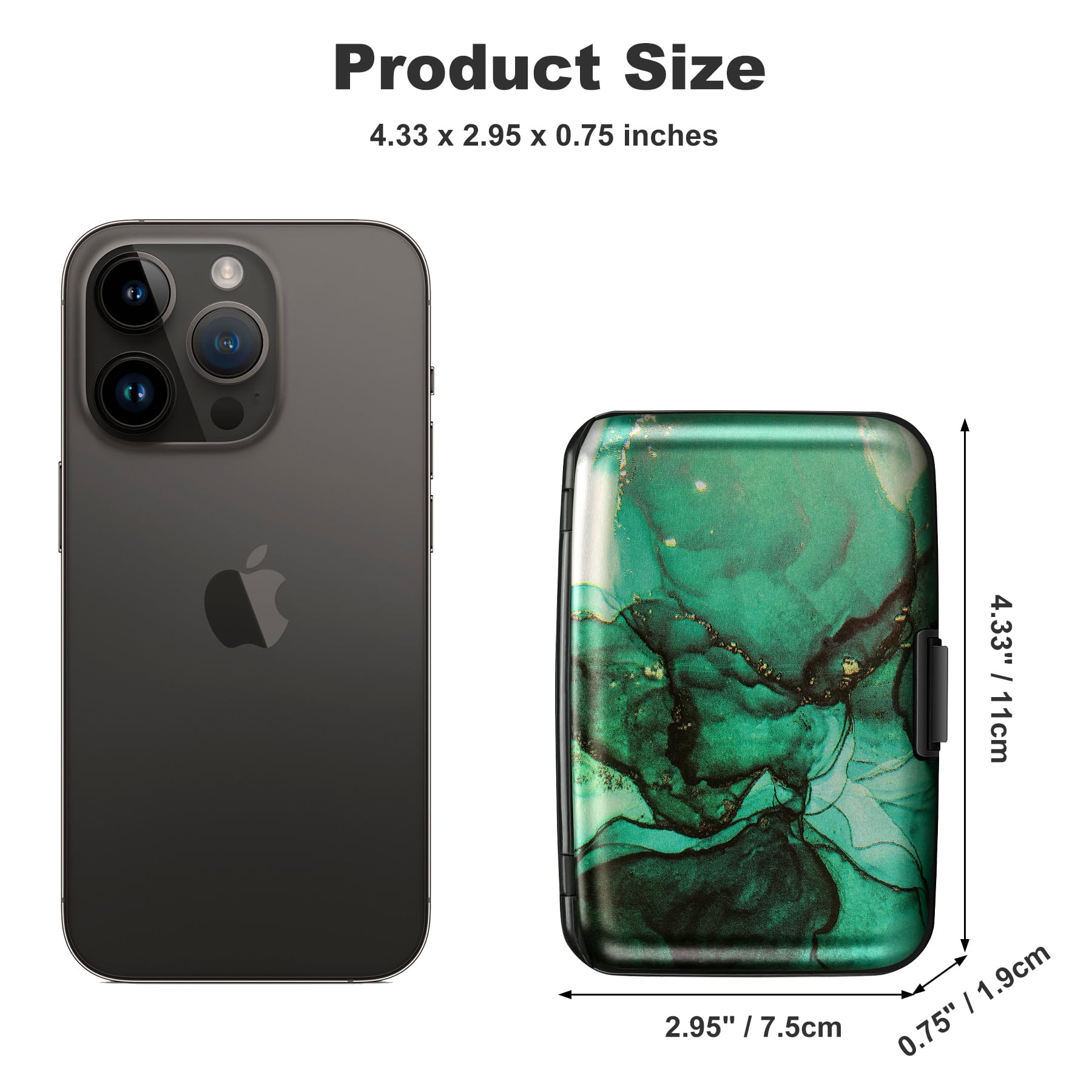 The size is 4.33 x 2.95 x 0.75 inches, Slim and small exterior design, are fit in your front pocket,suitable for travel and business carrying.