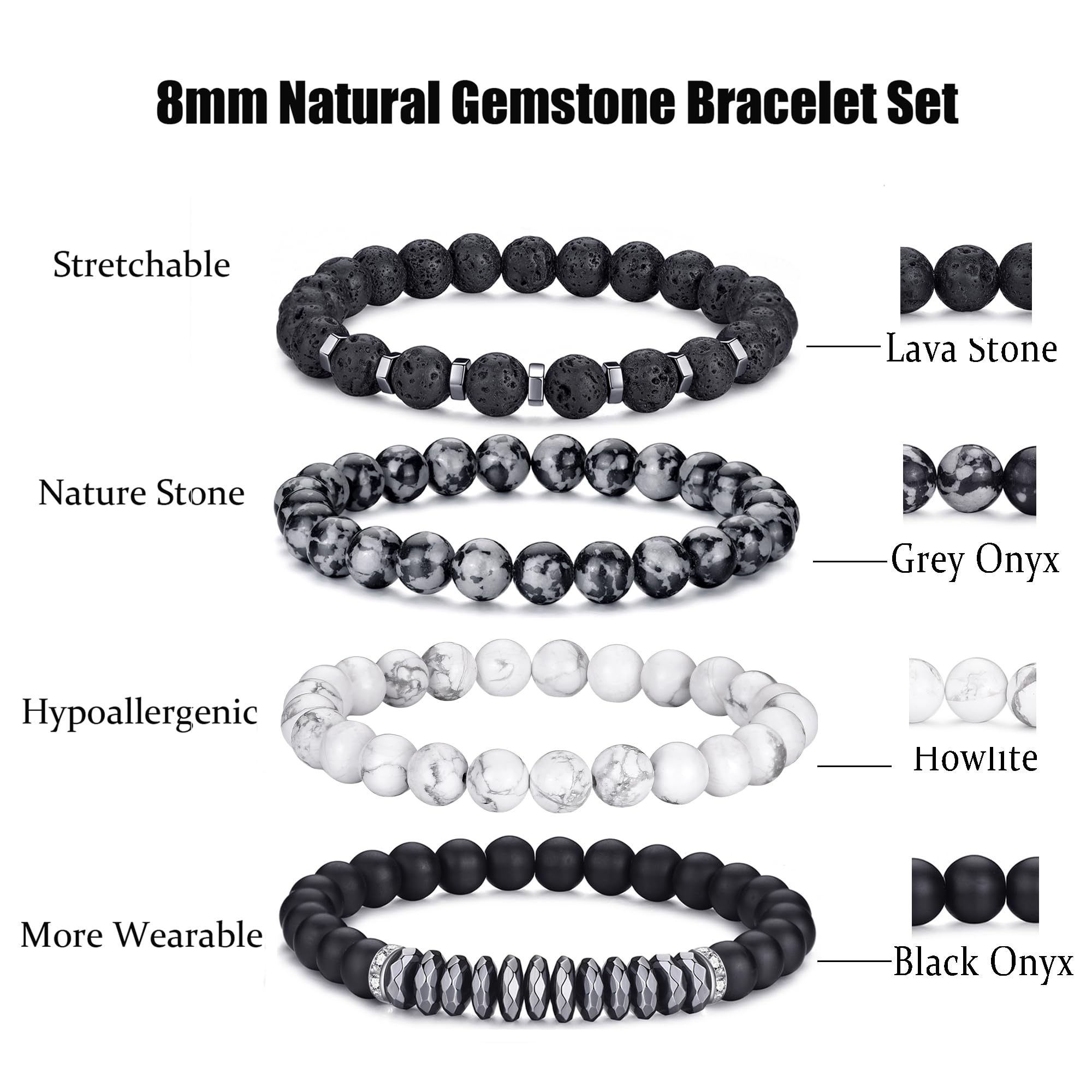 Mens Bracelets Size:The tiger eye stone and black matte agate stone bracelet can Stretch,Bead size:8mm,Adjustable Range: 7.3''-10.4''. Perfect sizes as gemstone bracelet for both men and women UNISEX. Natural tiger eye mens bracelet is a perfect bracelet jewelry accessory for any occasion to change your style and mood.