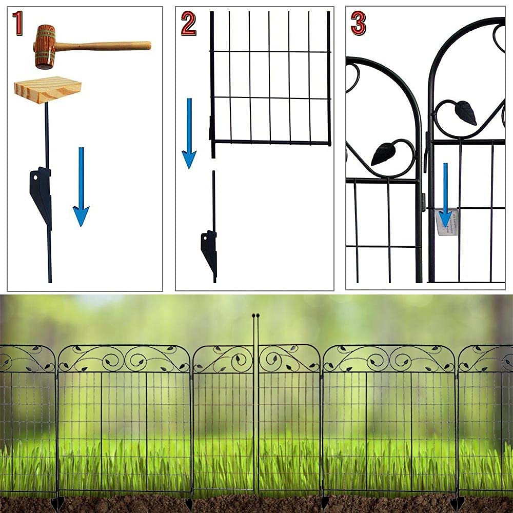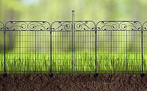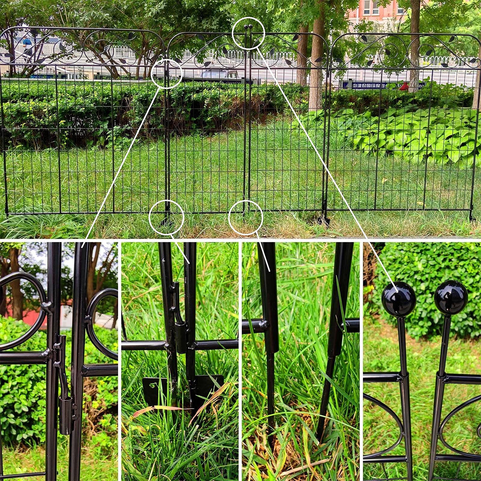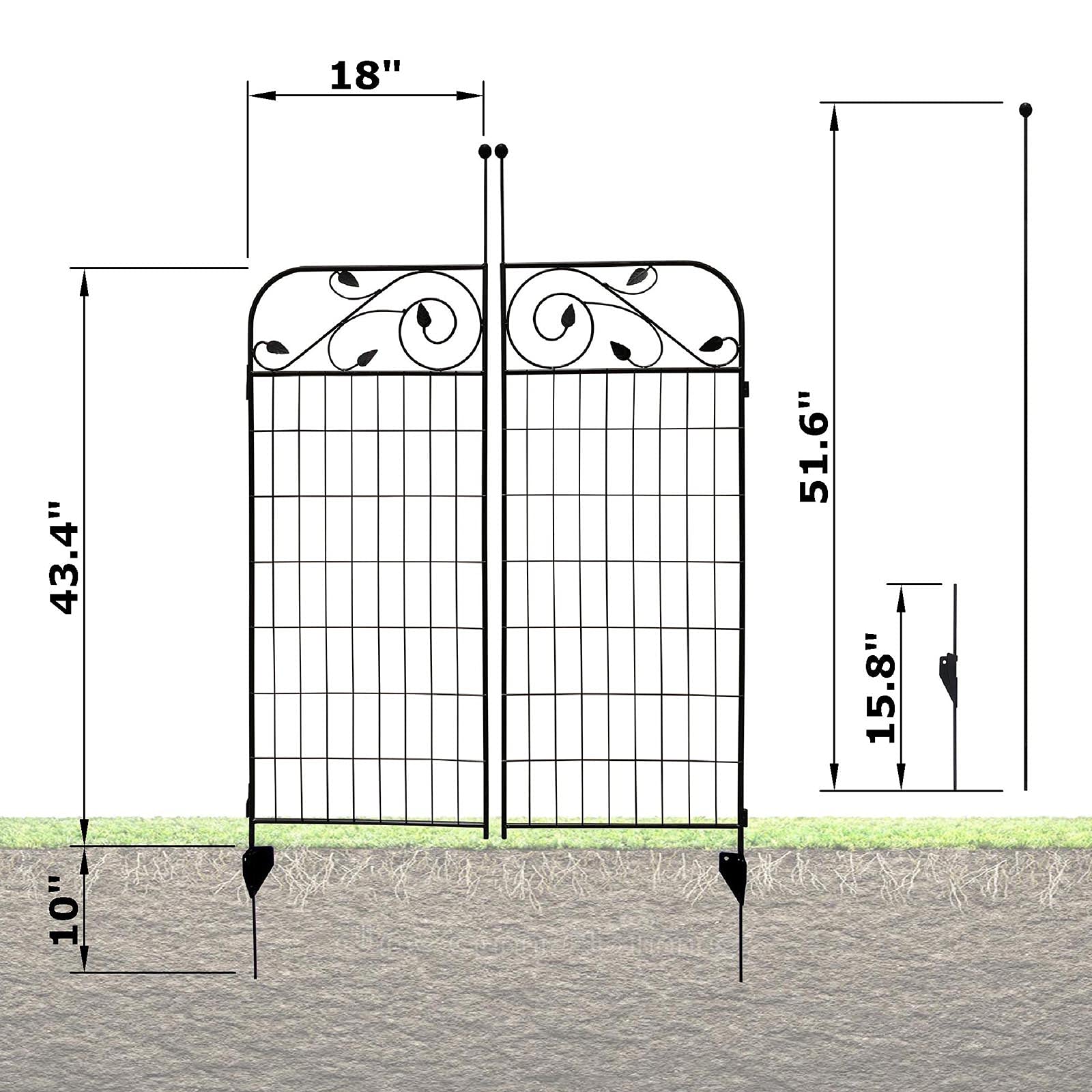 Fence panels are easily folded and unfolded after attached together to make longer enclosure. Artsy design with leaves decorated. Approx. 44” high x 36” long. Attached 2 anchors on each panel, total 2 anchors with all 2 piece gate in one package.