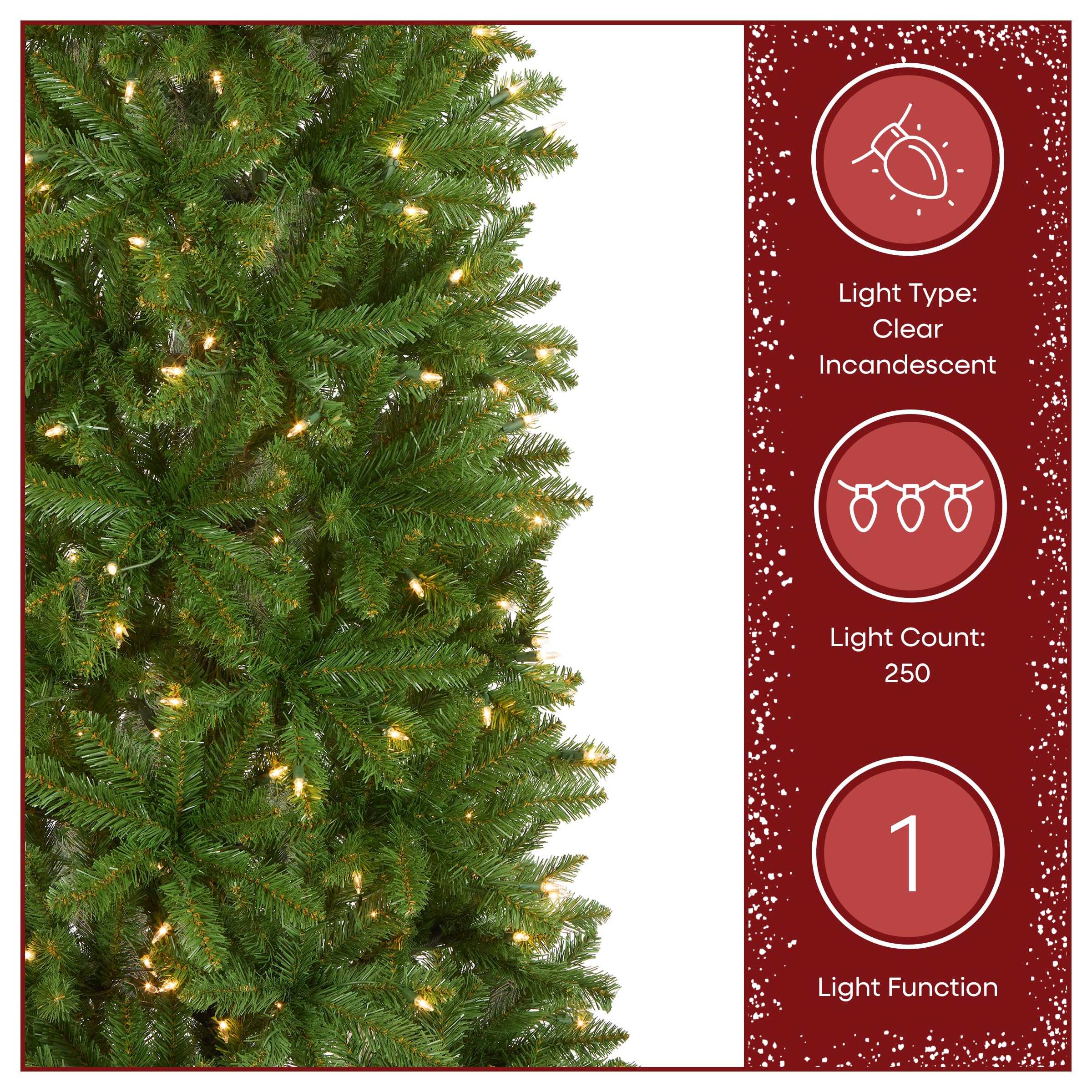 Features 250 white lights that remain lit even when a bulb goes out. The lights are strung on the tree before packaging, offering an easier, more convenient set up.