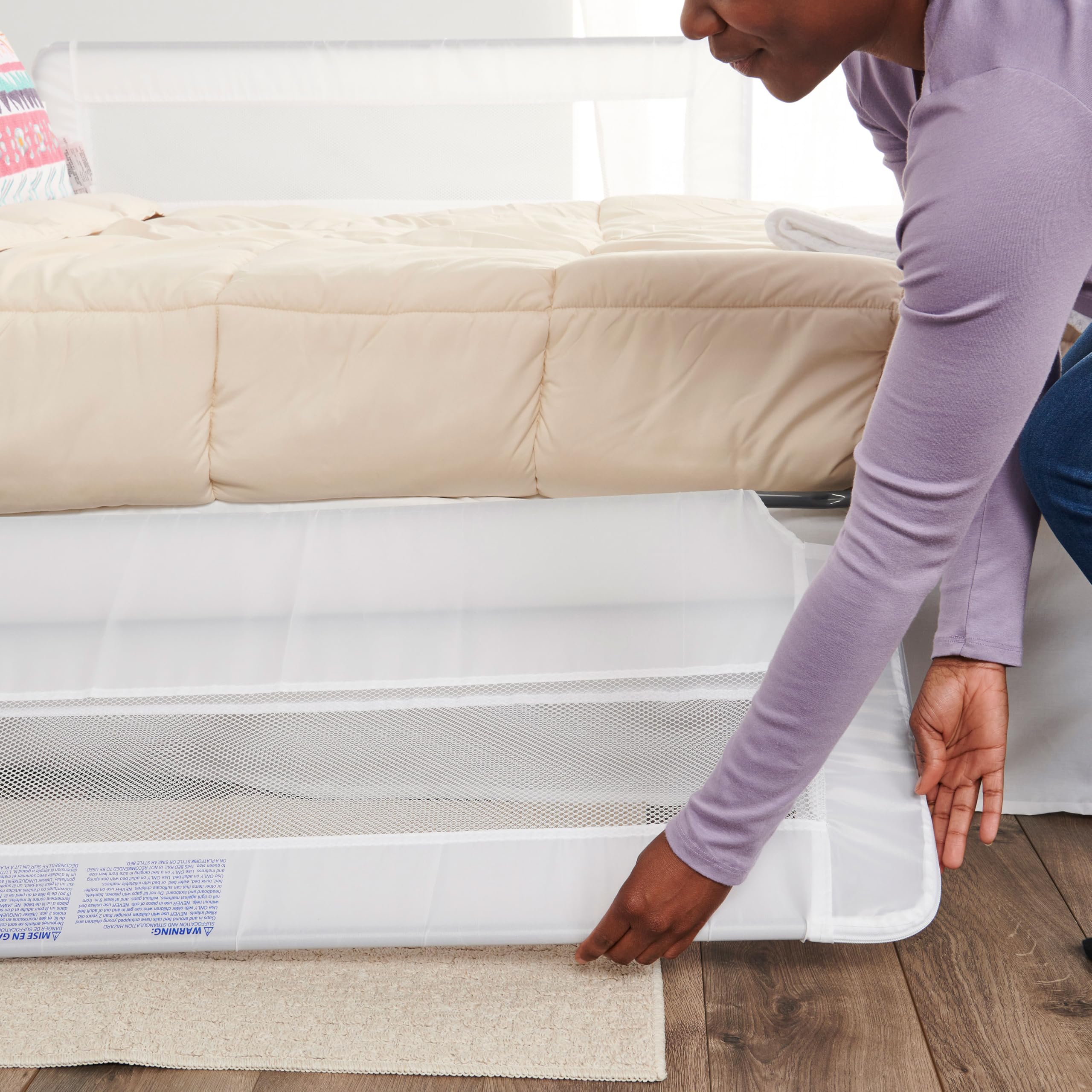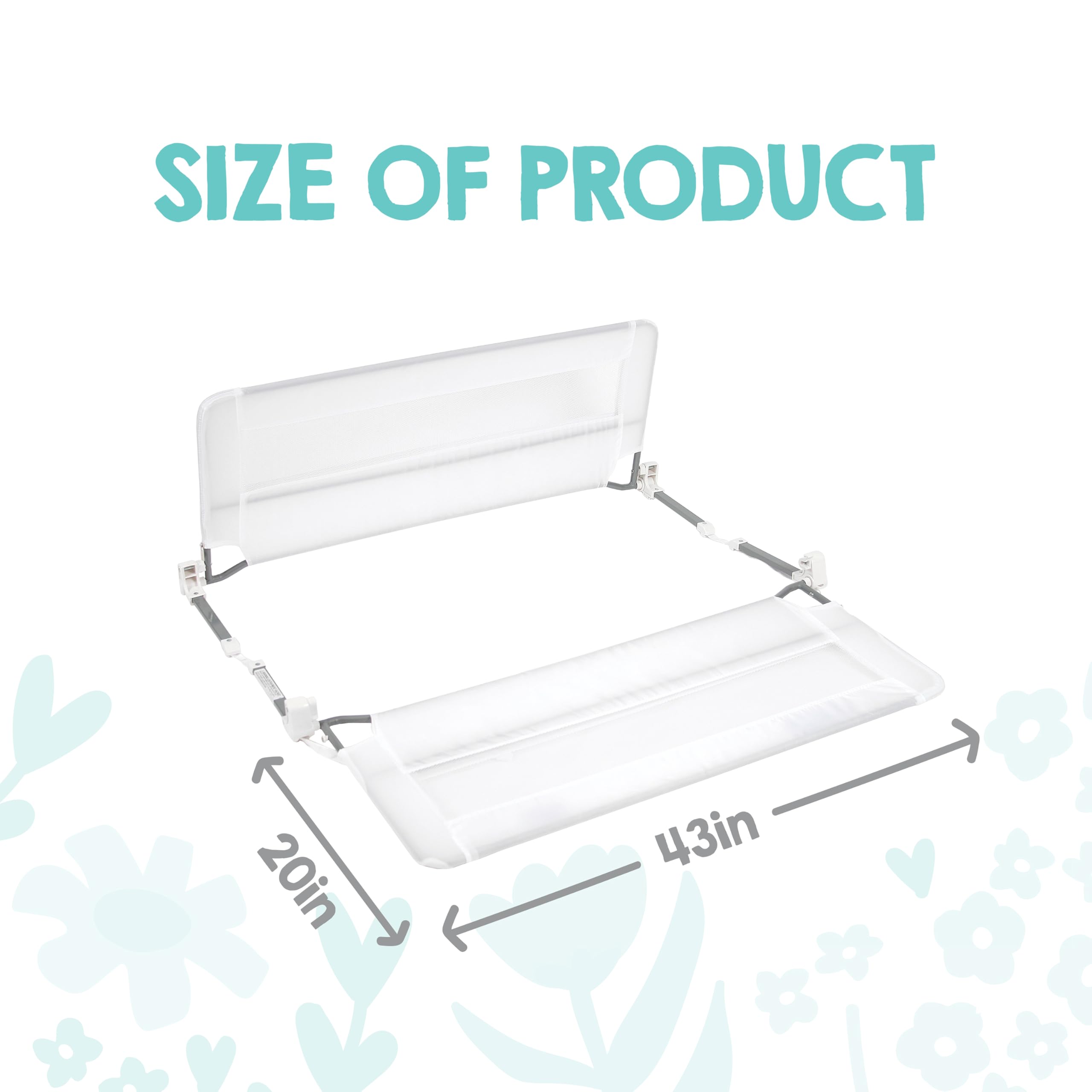 EXTRA LONG & TALL FOR MAX COVERAGE: Measures 43” long with 20” tall sidewalls to help prevent falls and accommodate thicker mattresses for added security and peace of mind.