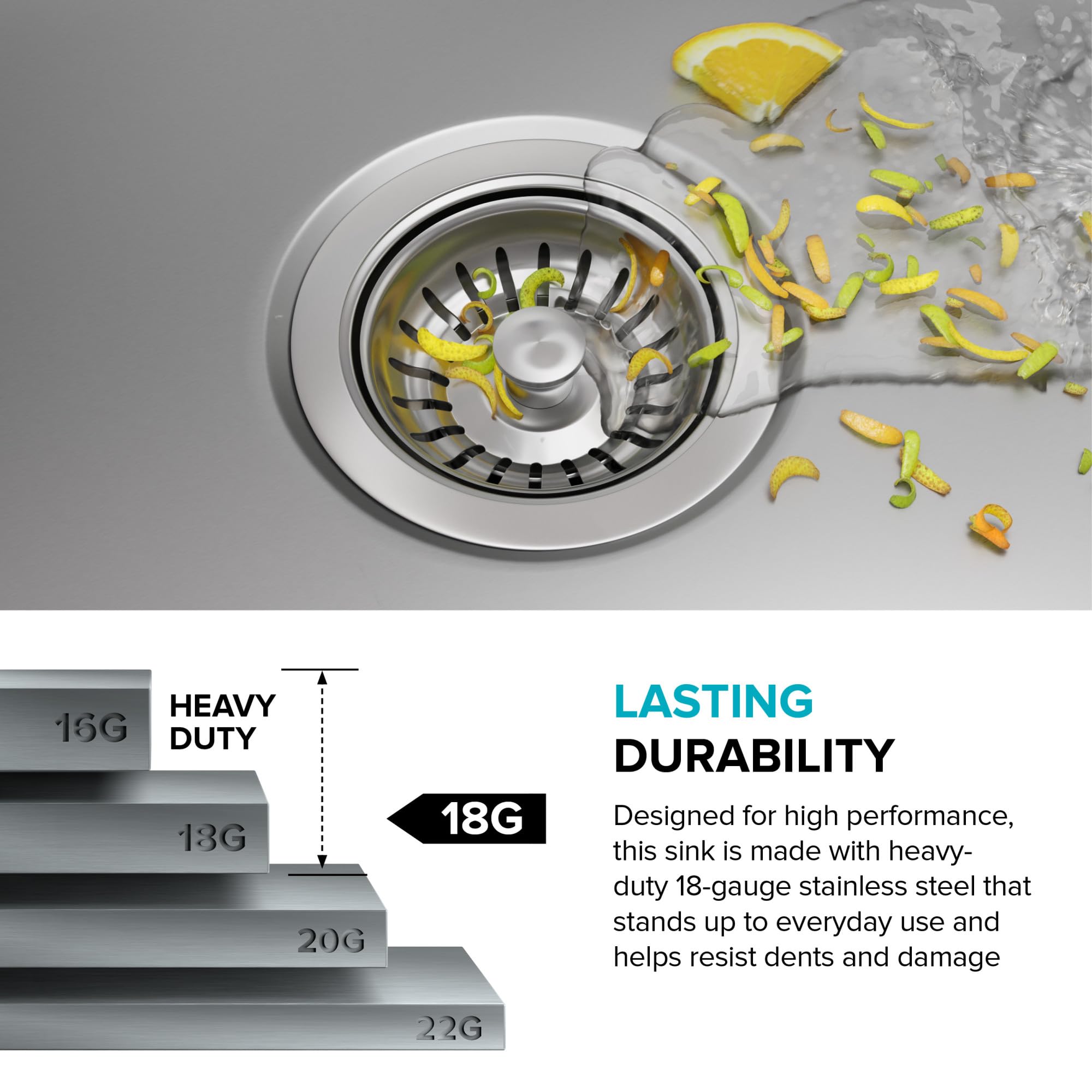 LASTING DURABILITY: Made with heavy-duty high-performance T304 18-gauge stainless steel that stands up to everyday use and helps resist dents and damage