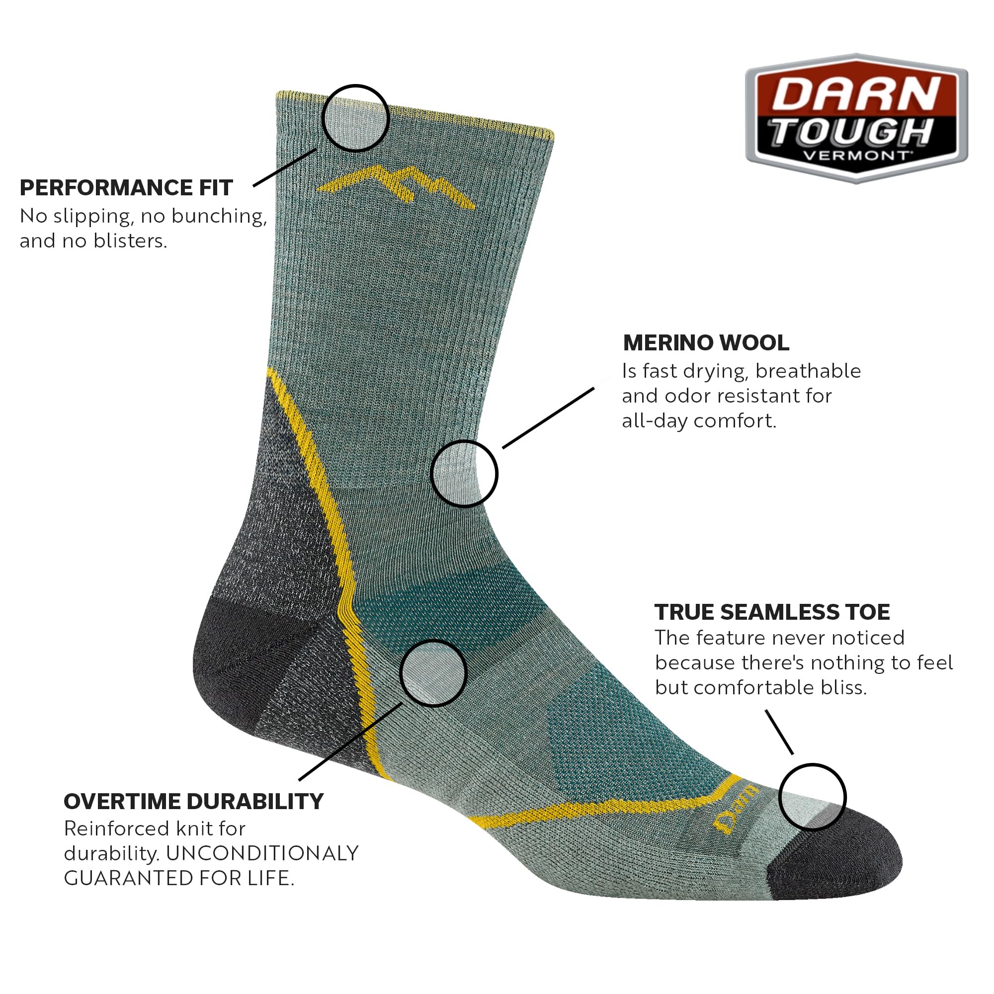 Micro Crew Height - A shorter, more concise take on the traditional crew height. Peeks just above the top of a standard hiking boot.