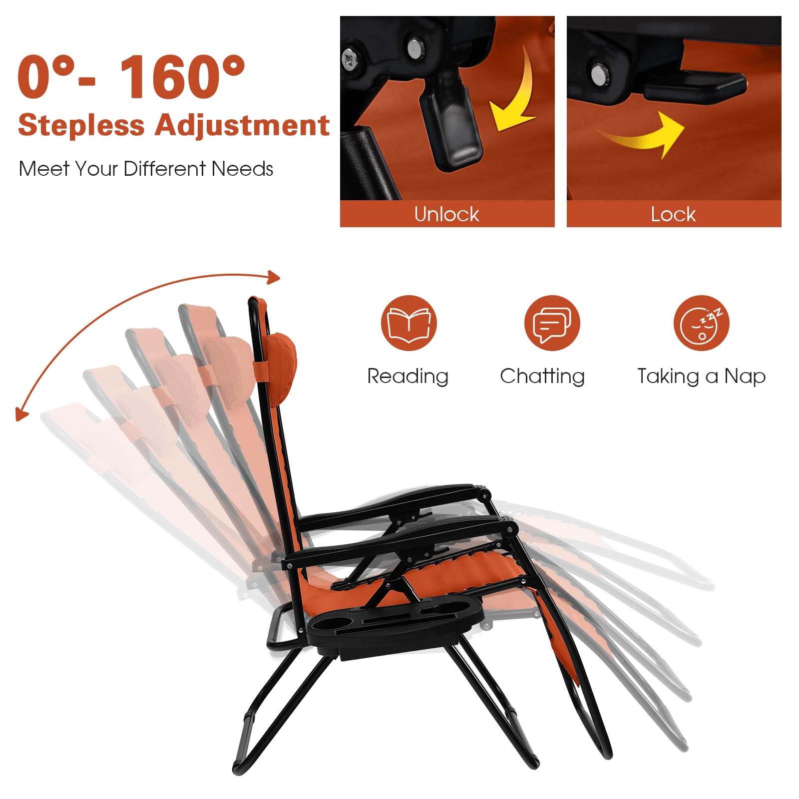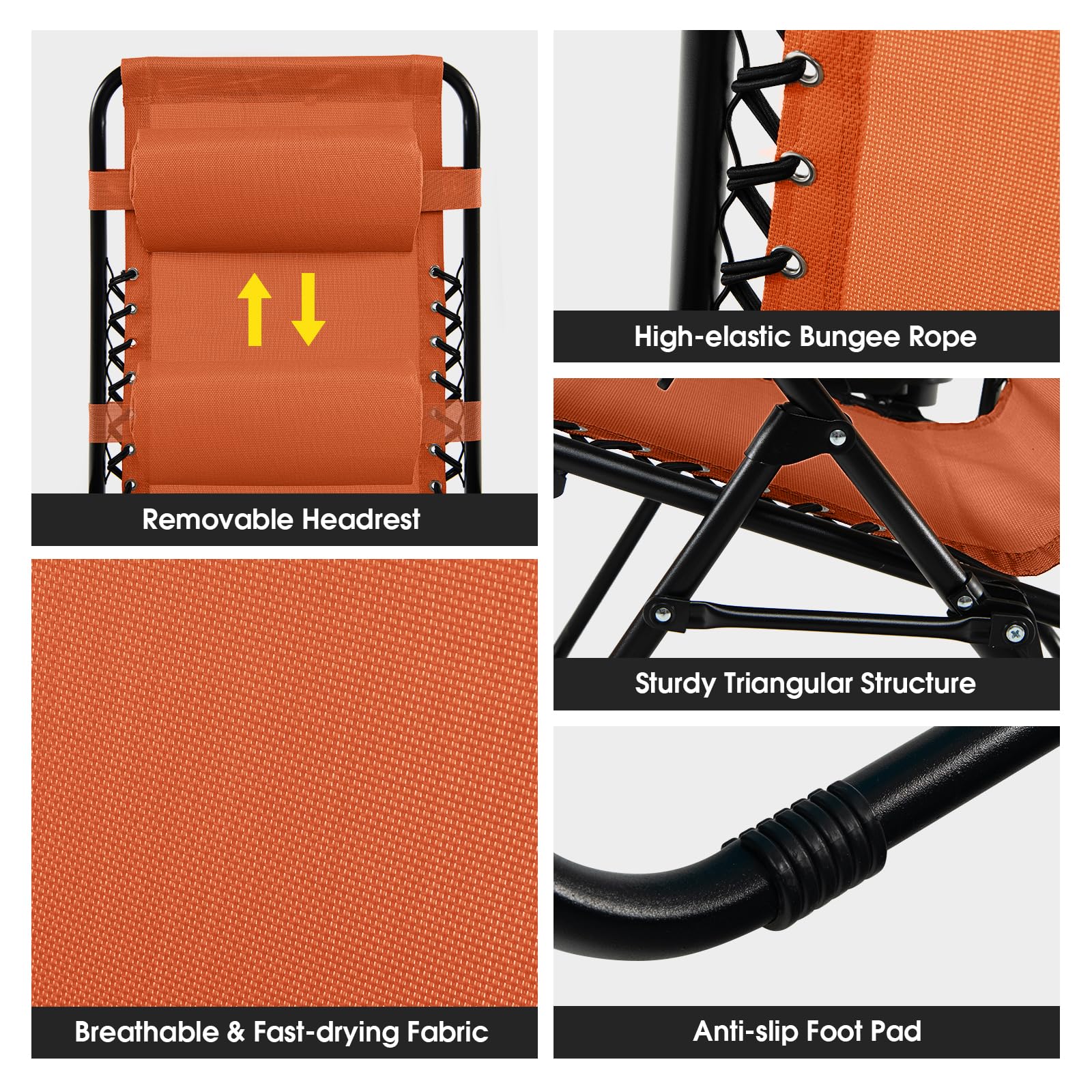 【Relaxing Reclining】The Goplus anti-gravity chair can be reclined from vertical position to the 160°comfortable lying position, allowing you to go relax out thoroughly in the summer breeze. Also, the premium elastic ropes firmly connect the seat fabric to the steel frame, providing utmost coziness and stability.