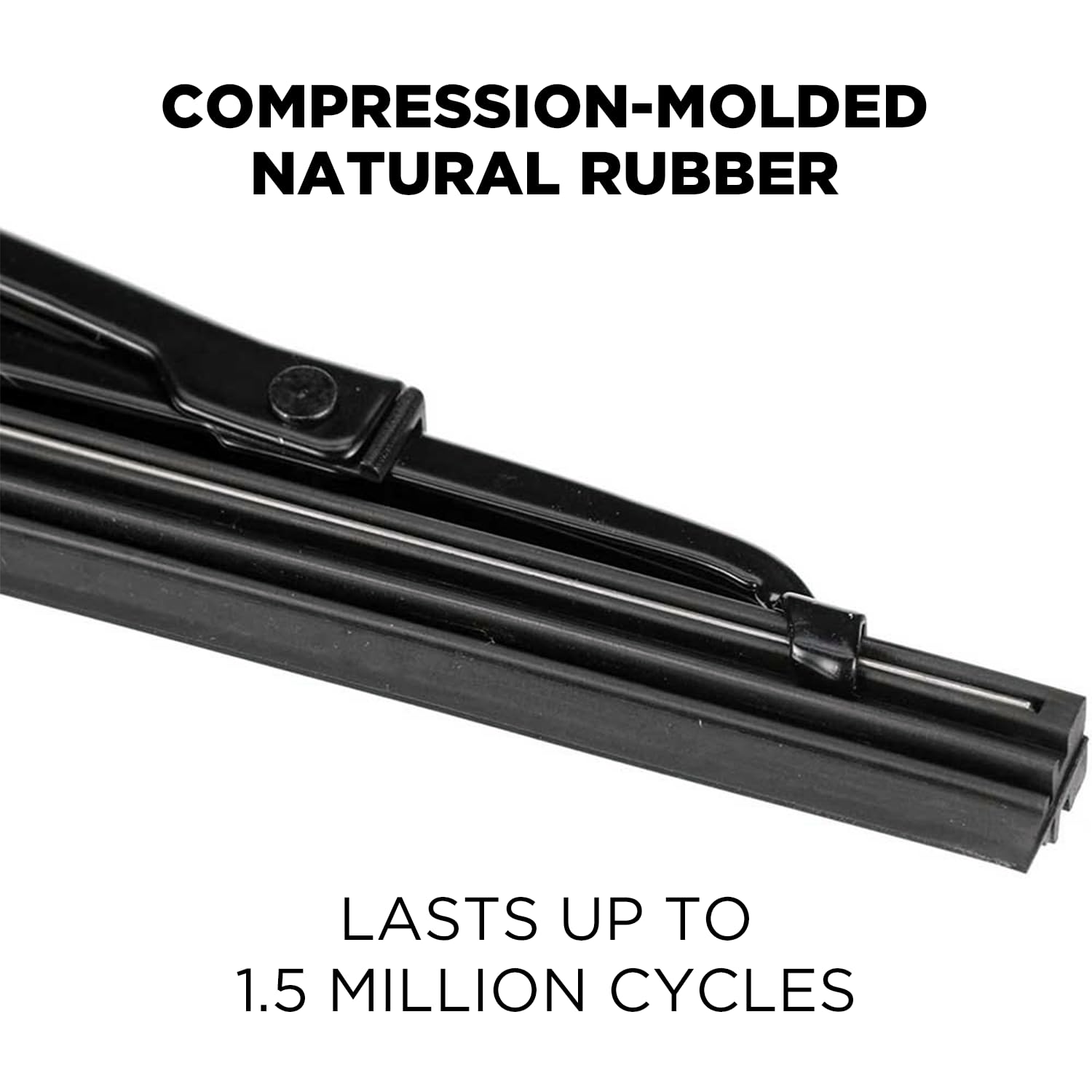 ClixWiper Heavy Duty Blades - Engineered for Performance, Built to Last Enhance your driving experience with ClixWiper Heavy Duty Blades, designed for superior visibility and exceptional durability. Crafted with a sturdy 100% Steel Frame, these blades are built to endure the toughest conditions. The 100% Natural Rubber Blade guarantees a streak-free, silent wipe in all weather, from heavy rain to snowy blizzards. Universal Fit for Easy Replacement: With a Wide Saddle Mount compatible with 13.6mm and 17mm wiper arms, ClixWipers Heavy Duty blades fit a vast array of vehicles. No more searching for the right size - these blades are your universal solution for windshield maintenance. Heavy-Duty Performance: Whether it's torrential rain or a harsh winter storm, ClixWiper Heavy Duty blades deliver unmatched performance. Their robust construction ensures your windshield remains clear for safe driving in any weather. Direct Upgrade for Popular Brands: Upgrade your vehicle effortlessly; these blades are a direct replacement for Anco 50 Series and Trico 67 Series, simplifying your upgrade process. Quick & Easy Installation: Save time with ClixWipers user-friendly design. All necessary hardware is included for a hassle-free installation, ensuring you're back on the road quickly.