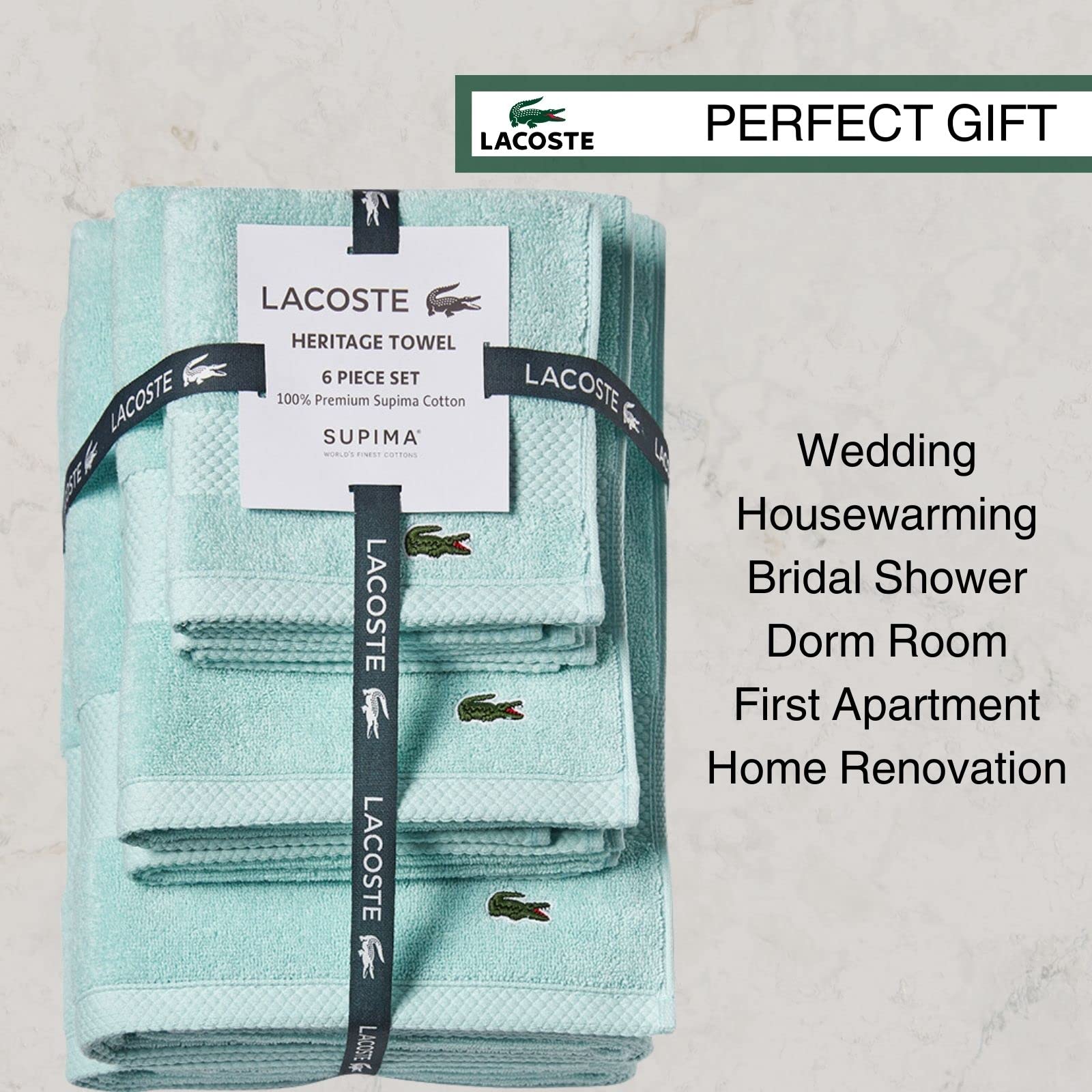 PREMIUM SUPIMA COTTON - Lacoste Heritage Towels are made from 100% grown-in-America Supima cotton loops. That means that every towel is soft to the touch, retains its color, and stays strong longer than other towels
