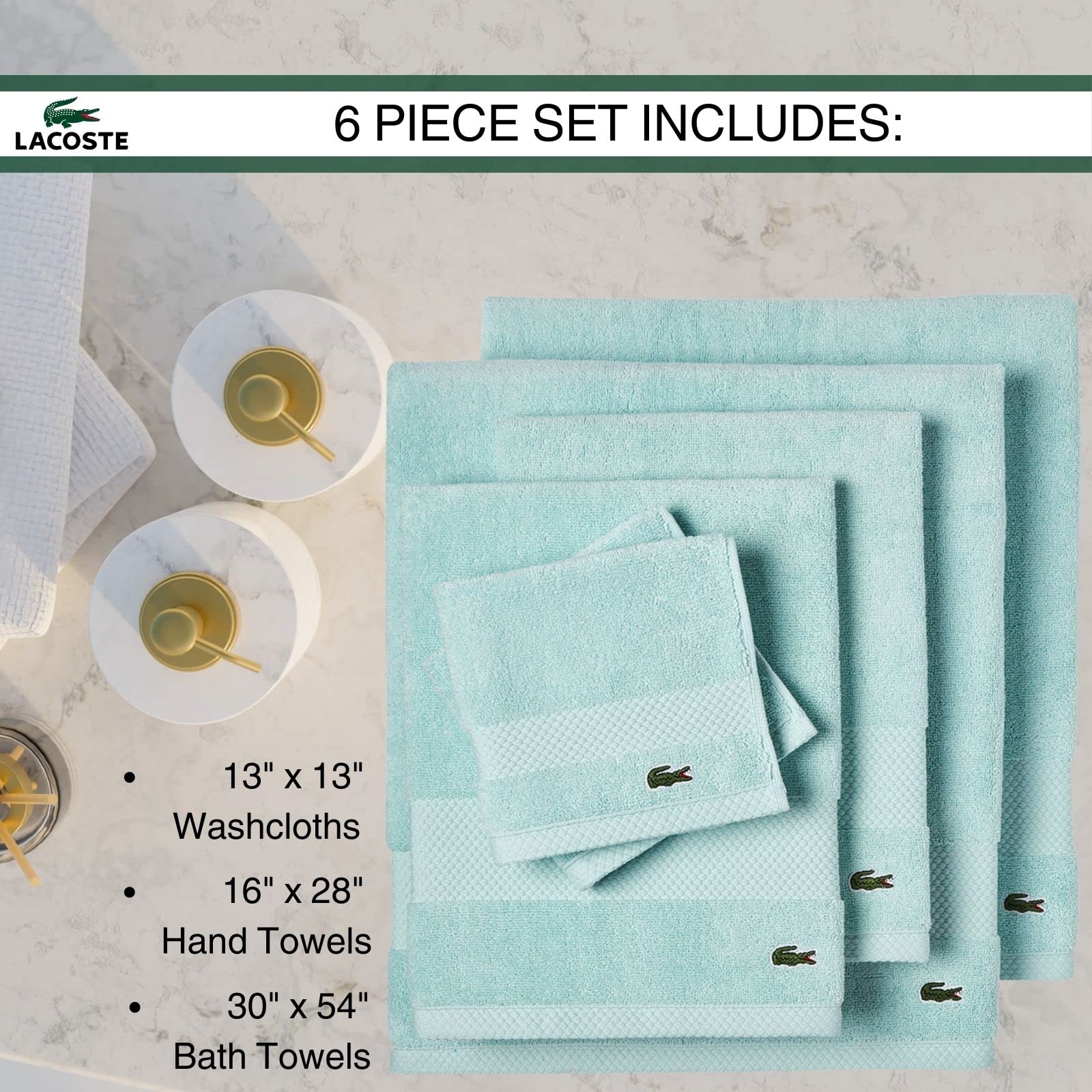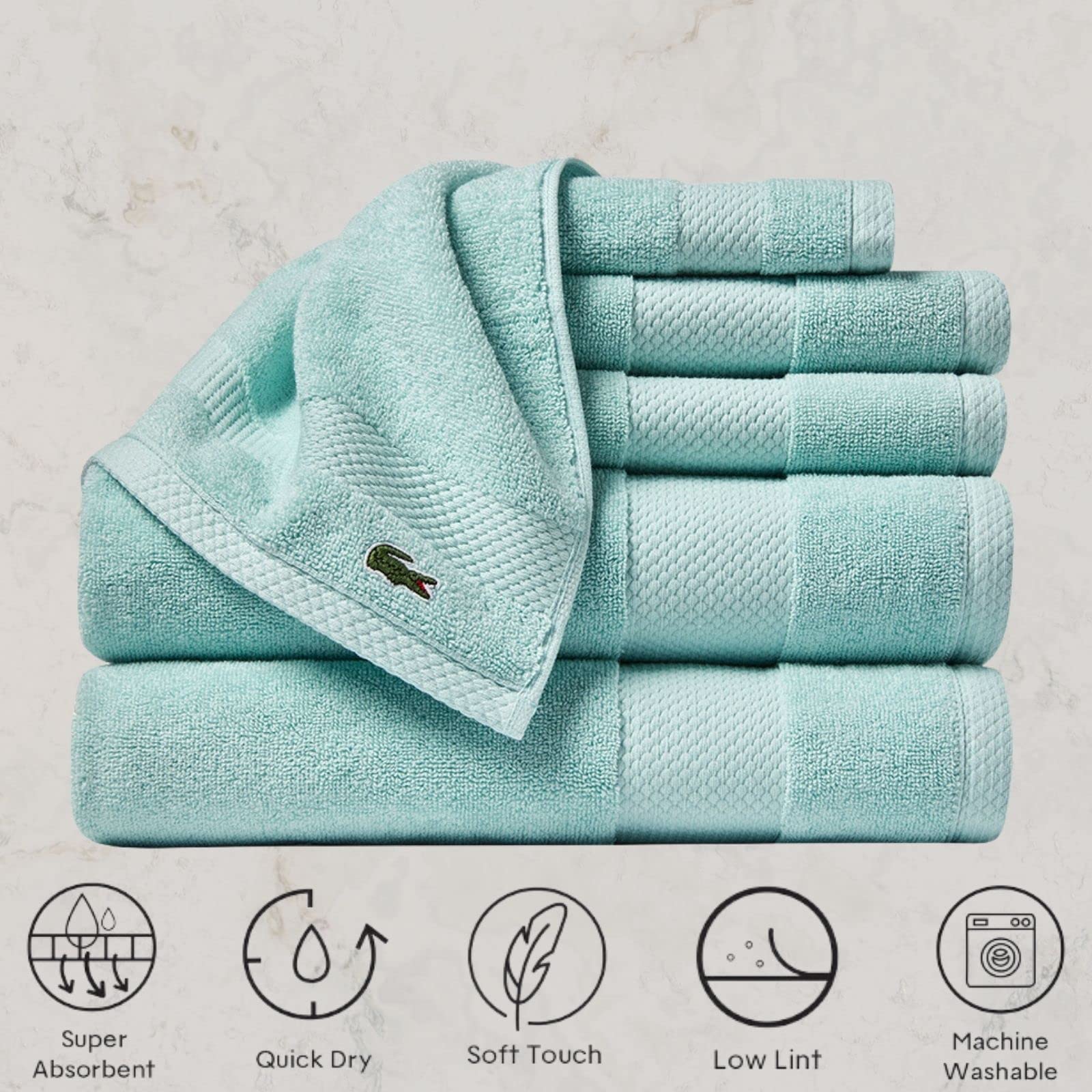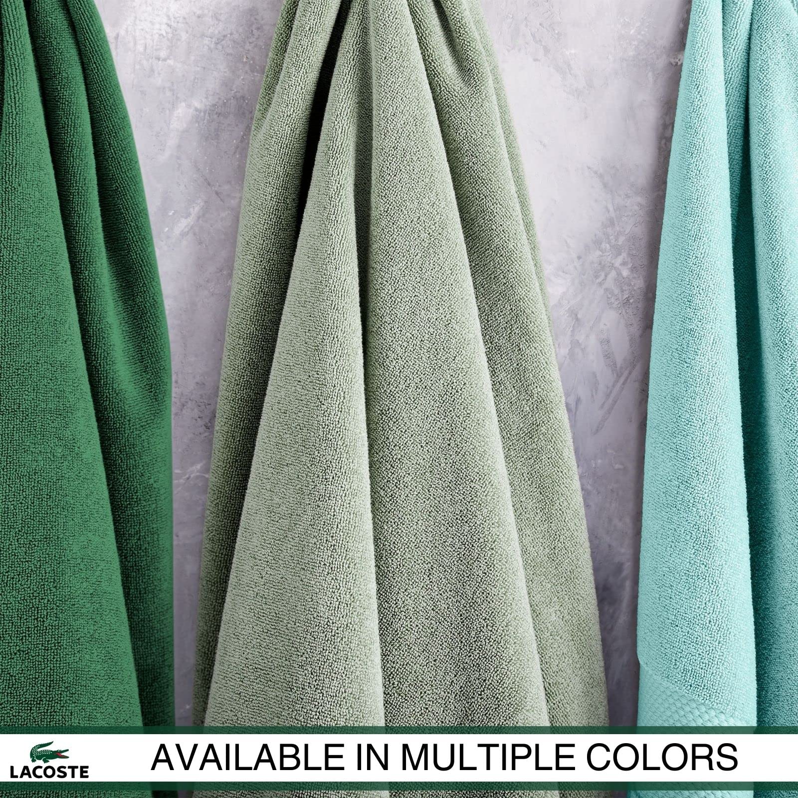 ICONIC DESIGN - This premium towel is the perfect addition to any home. Available in a series of designer colors, and featuring the iconic Lacoste crocodile, it not only adds a stylish touch to any bathroom, but is also extra durable and stands up to time and use with minimal pilling.