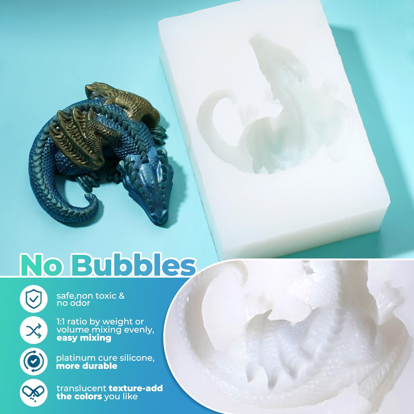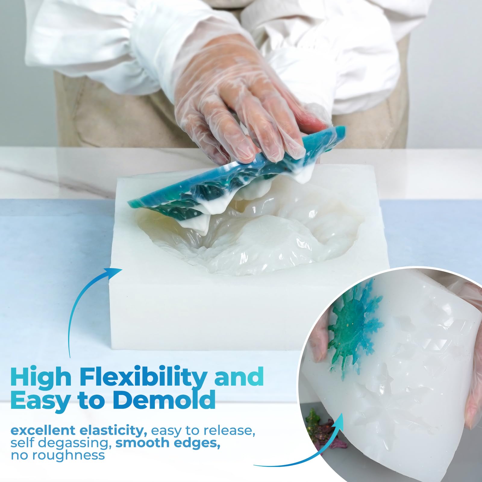 PREMIUM MOLDS MAKING SILICONE MATERIAL: Our translucent liquid silicone for mold making are platinum-cured silicone, made by safe silicone material, non-toxic and no odor, very flexible, soft and clear. You could also mix mold making silicone rubber with mica powder to create new colors