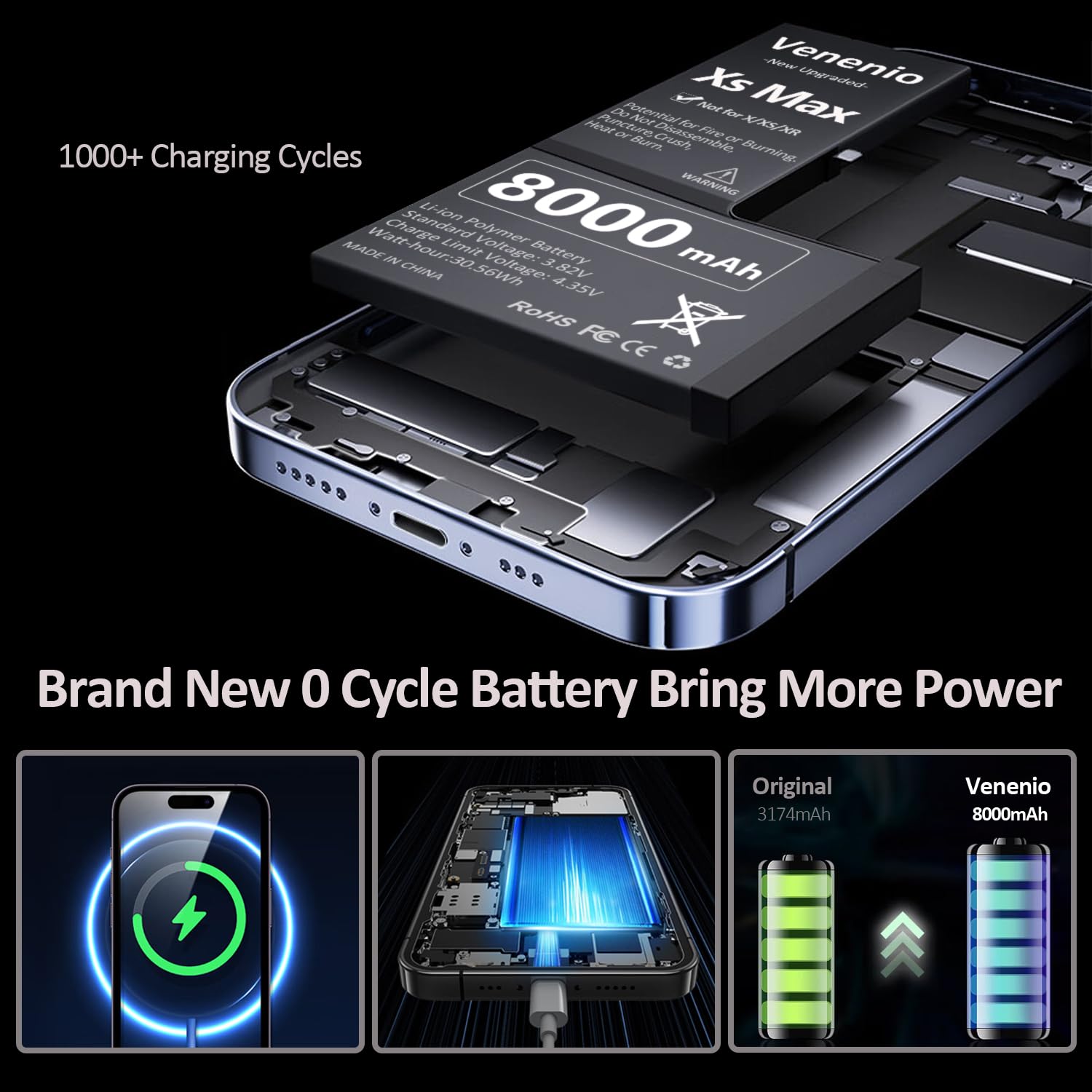 💚[SECURITY QUALITY ] - Every Xs Max Replacement battery is tested by professional tester under strict quality control standards,over temperature protection, over charging protection, over load protection, short circuit protection and safeguard protection.Through the CE and RoHS certified.100% 0 cycle not refurbished cycle time by machine.