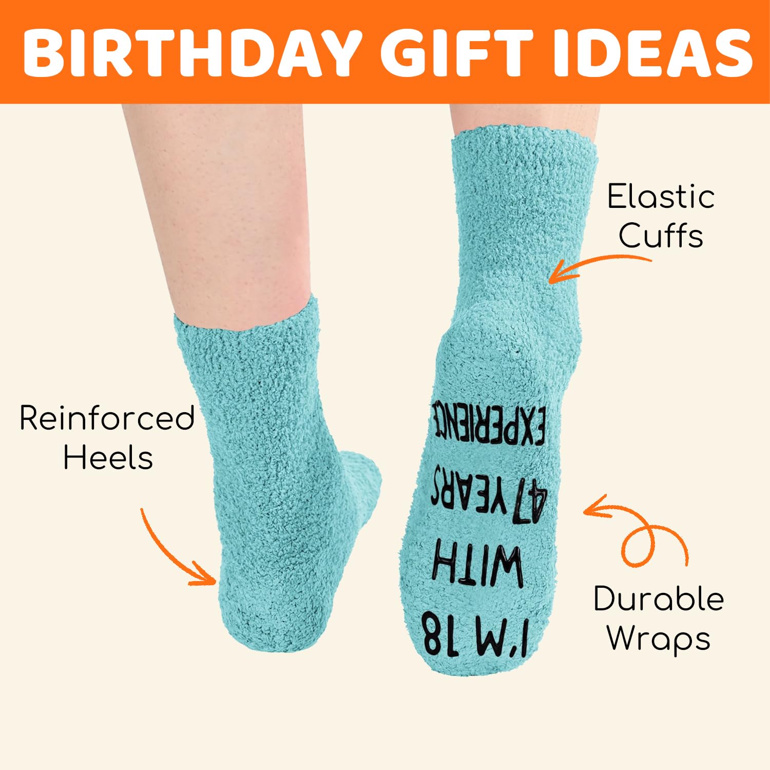65th BIRTHDAY GIFT IDEAS: Celebrate birthday with our unique socks, humorously inscribed with "I'M NOT 65, I'M 18 WITH 47 YEARS EXPERIENCE."They make an ideal gift for Birthdays, Christmas, or White Elephant exchange.
