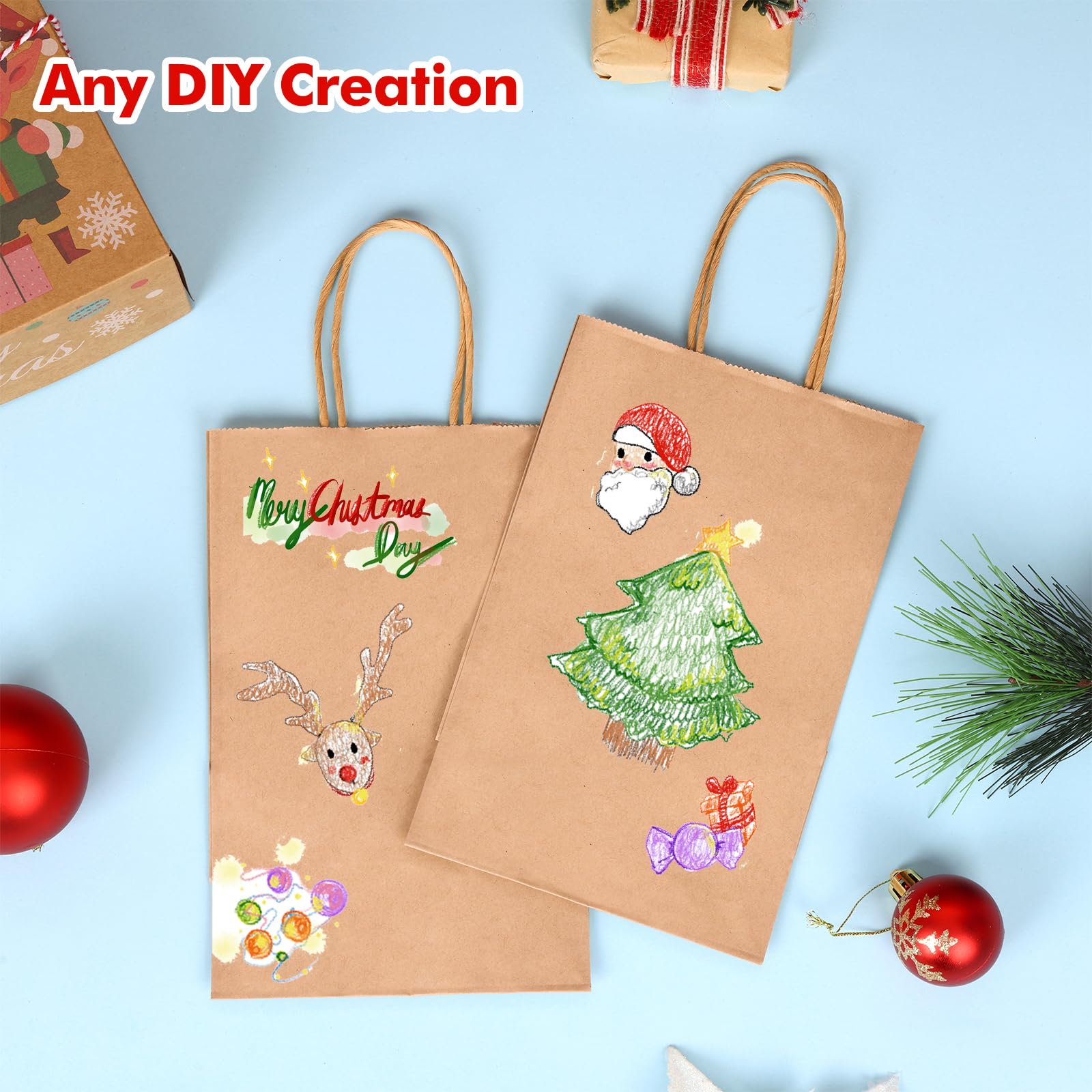 Widely Used: These kraft paper bags are suitable for use as holiday gift bags, shopping bags, retail bags, product bags, and wedding welcome party gift bags. Also suitable for promoting personal or corporate brands with logos or advertisements.